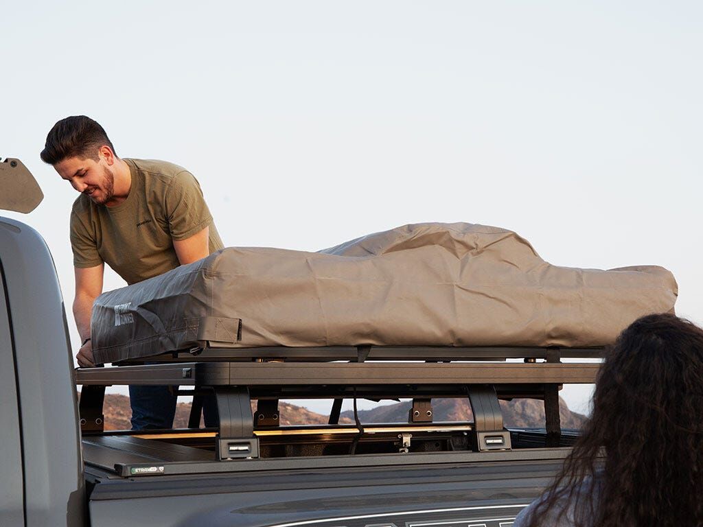 This kit creates a full-size rack that sits above your Ford F-150 truck bed and contains the Slimline II tray (1575mm x 1762mm) and 6 Pickup Truck Bed Universal Legs that fit into the supplied Tracks.