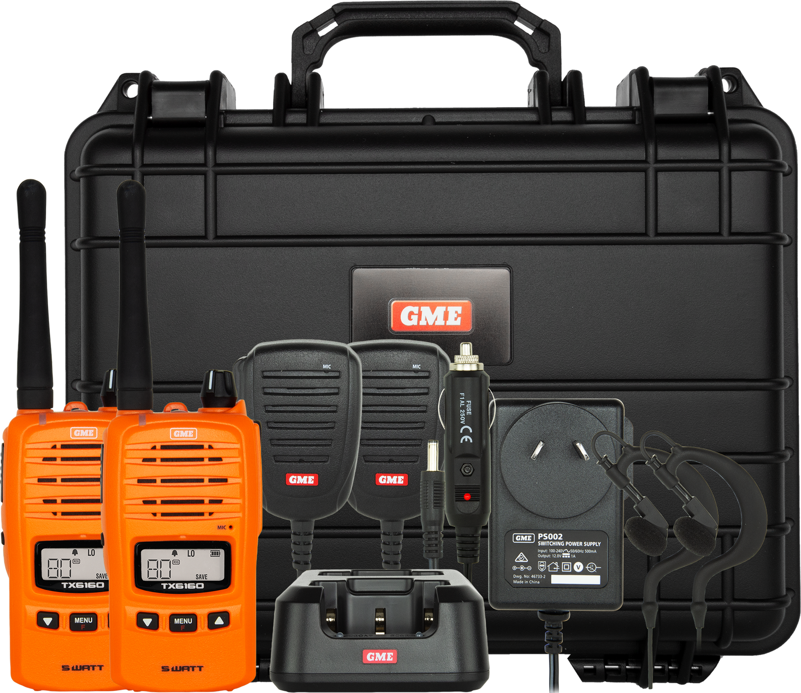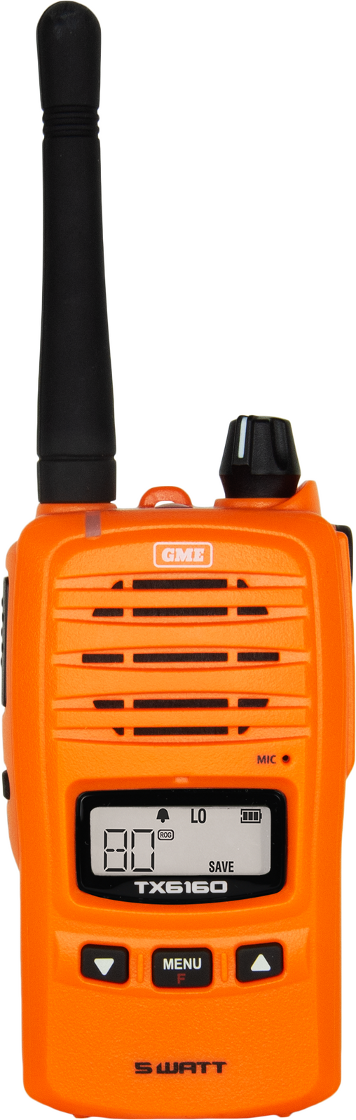 GME's popular blaze orange handheld is now available in a twin pack. This handheld radio has been extremely popular with 4WD enthusiasts, hunters and industrial groups requiring a handheld that stands out from the crowd.