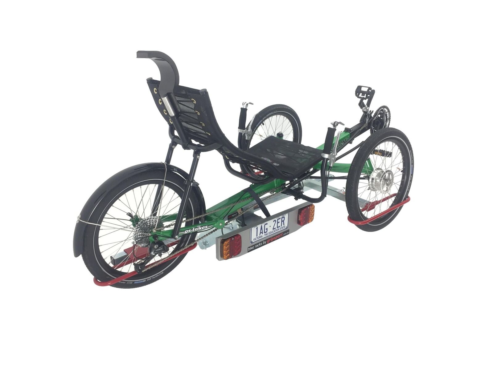 The Gripsport Trike Carriers are the ultimate bike rack allowing you to transport your 3-wheeler with confidence and ease. They are the perfect all-round tow bar bike rack made for cars, SUVs and 4WDs and can accommodate sit-up trikes, handcycles, recumbents and e-trikes. This rack can transport up to 1 trike and includes a light assembly and number plate holder.