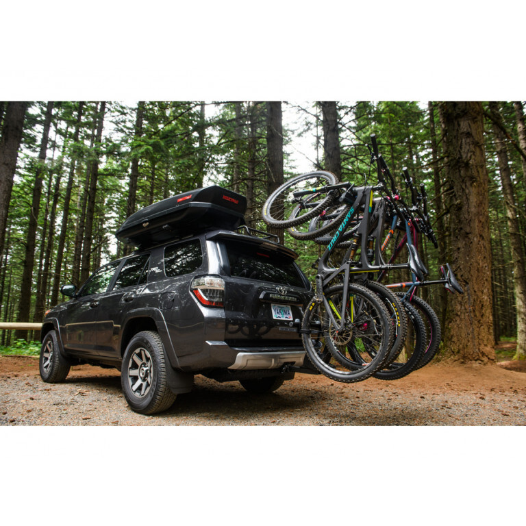 - Transports up to 4 bikes using minimal space – no multiple racks or trailers required