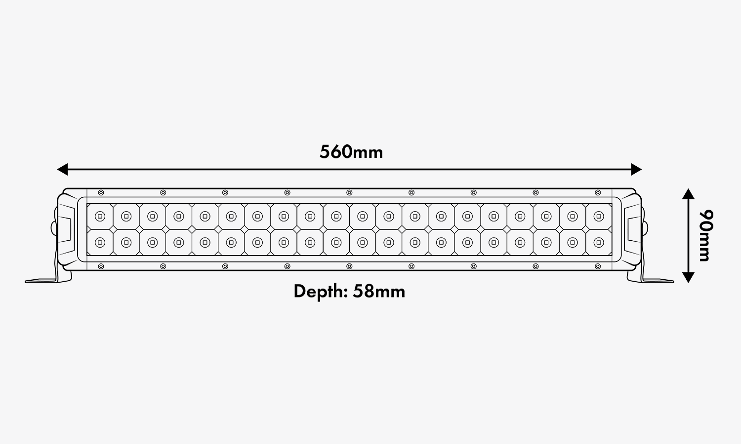 • Dimensions: 560mm (w) x 90mm (h incl. bracket) x 55mm (d)
