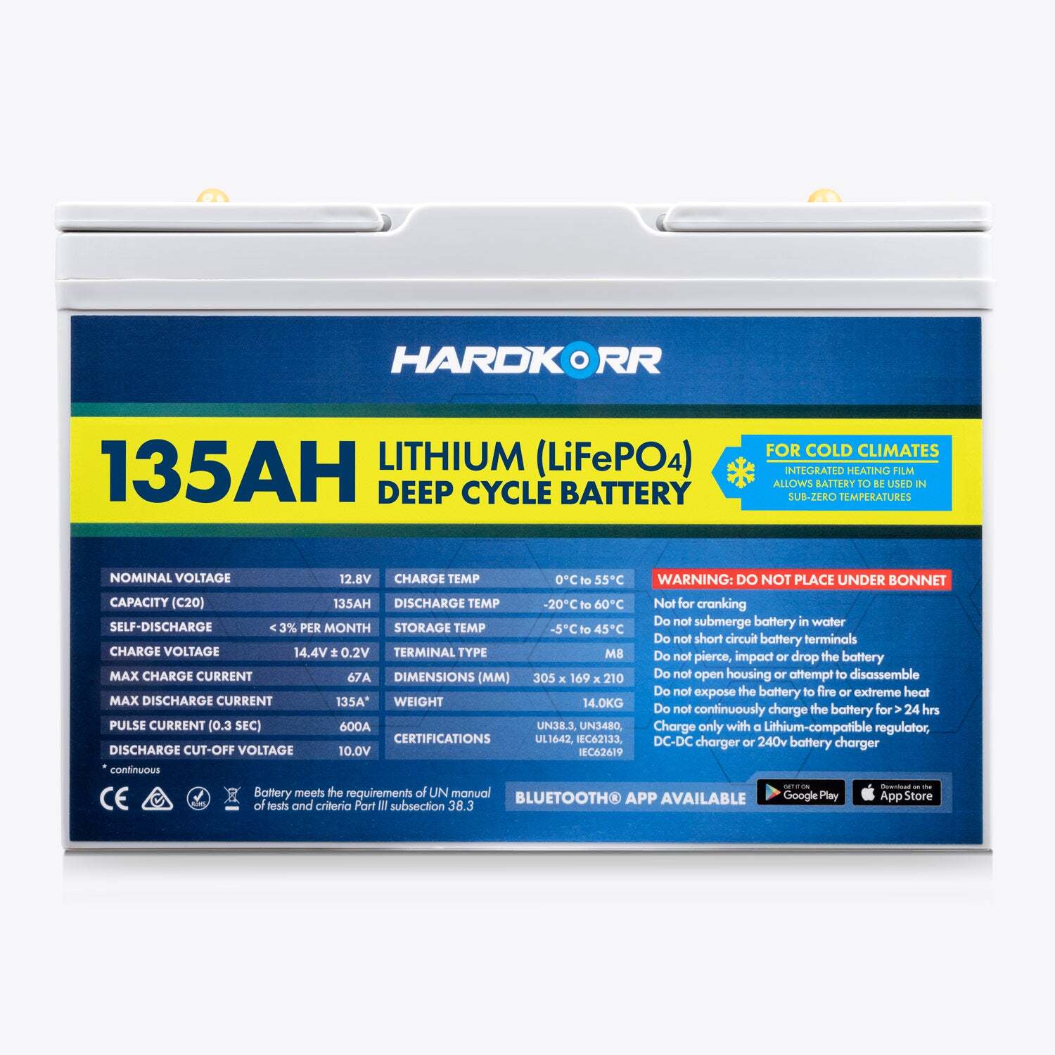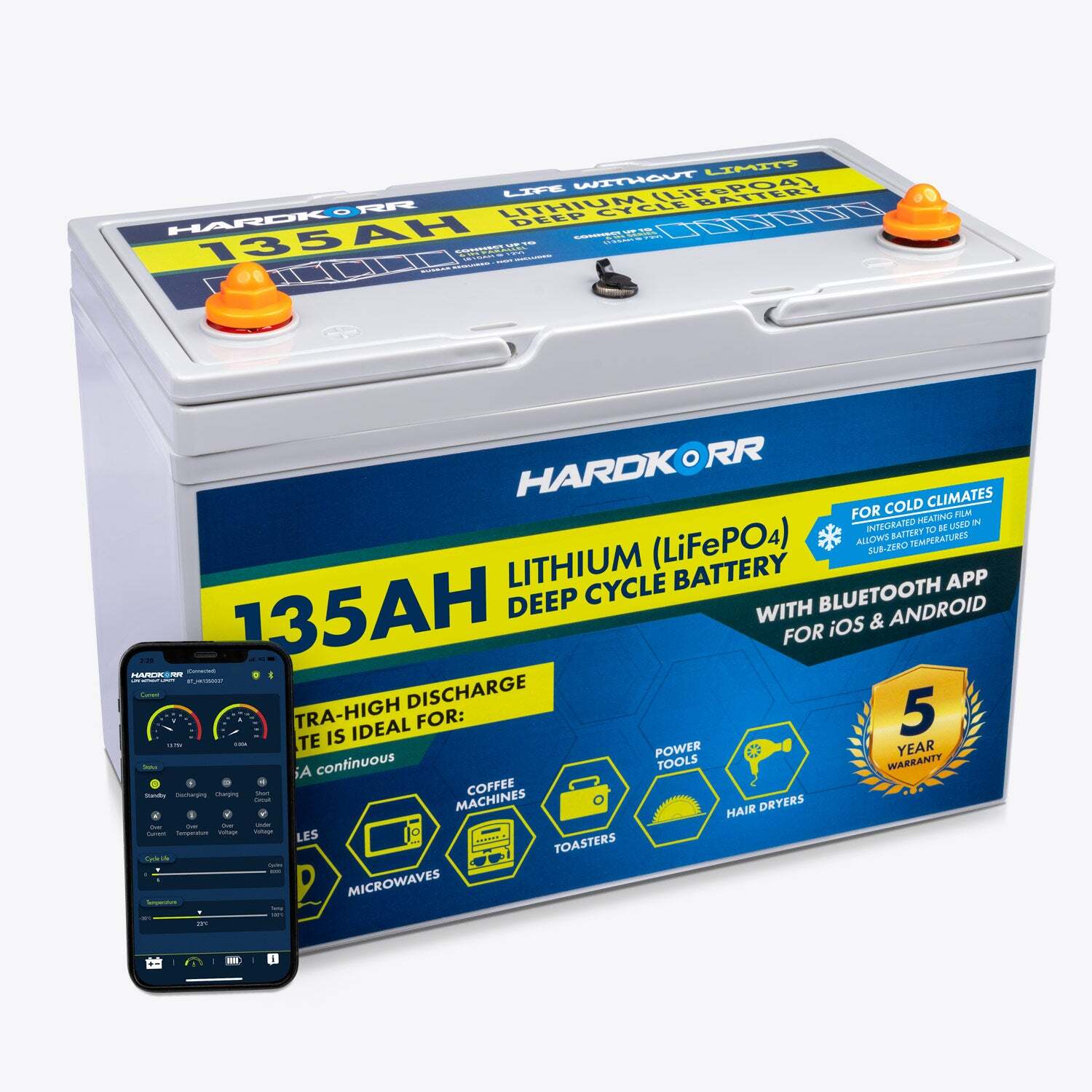 HARDKORR 135AH LIFEPO4 DEEP CYCLE LITHIUM BATTERY WITH Bluetooth and Heat Film