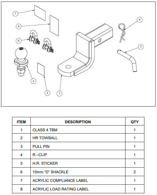 Vehicle Specific Notes: Landrover Discovery 5 comes with OEM fitted towbar structure and wiring but no ball mount. This kit provides towball mount towball shackles pin and correct compliance labels.