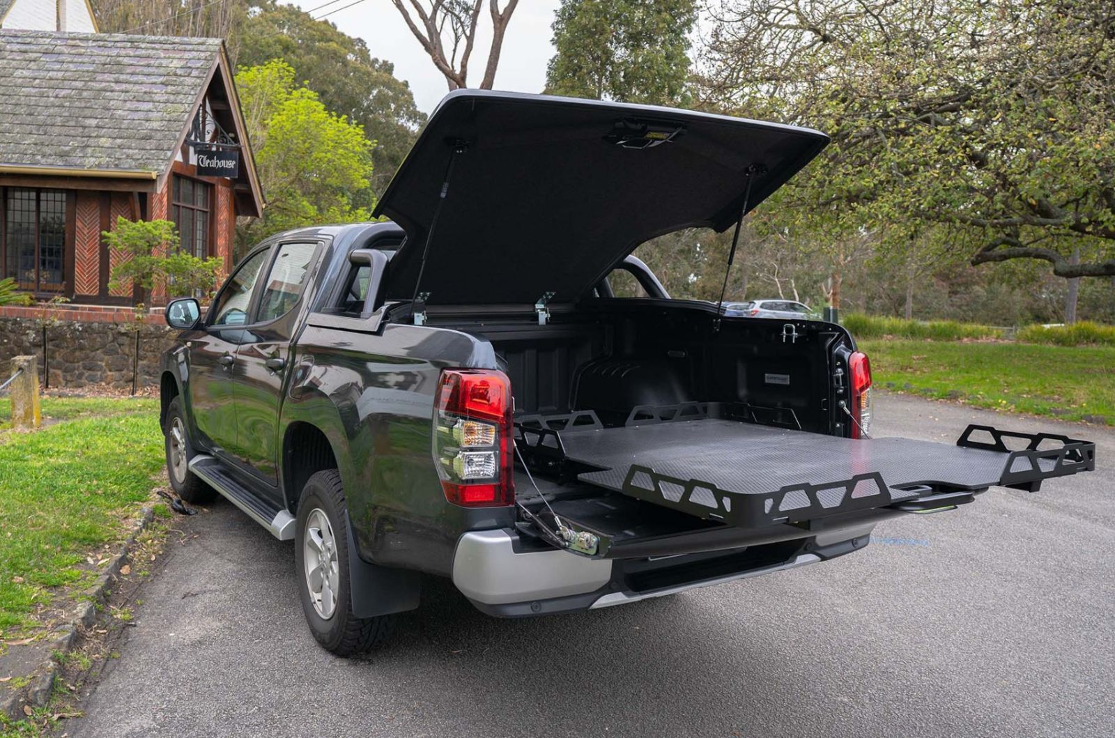 The ultimate solution for easy access and management of your vehicle's tub. The HSP Load Slide is a purpose-built, retractable slide tray featuring a heavy-duty steel frame and a custom-cut platform that contours perfectly to your vehicle, wrapping around the wheel arches for a seamless fit. Operated via a simple handle with multiple latching positions and a dedicated side rail, it’s designed to give you better control over your cargo. Compatible with canopies, it’s the ideal upgrade for convenience, durability, and functionality.
