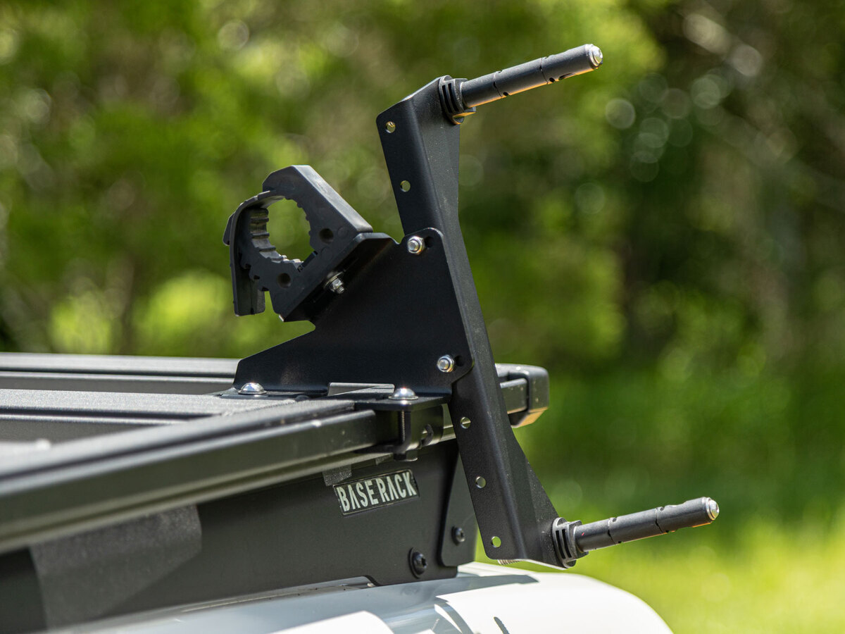 Positioned on the side of your roof rack, these mounting brackets keep your Maxtrax or TRED within easy reach and keep your roof rack free for all your gear.