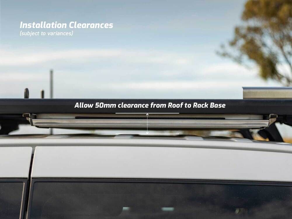 50mm clearance is required from the underside of all roof racks to the roof, at the narrowest point.