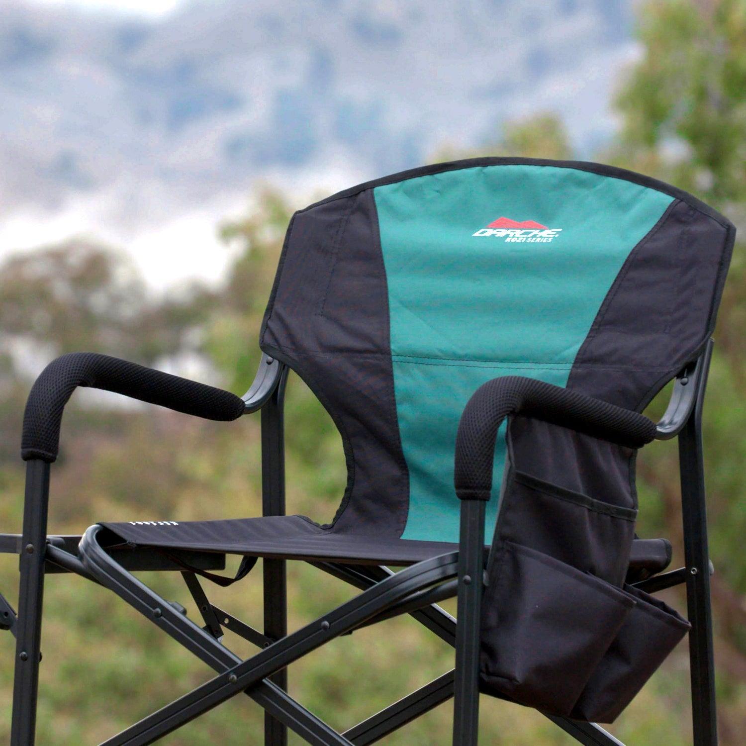 The chair features ample storage options for your gear, ensuring everything you need is within arm's reach. Whether you're relaxing by the campfire or enjoying a scenic view, the Darche Kozi Series Directors Chair is your go-to for comfort and convenience.