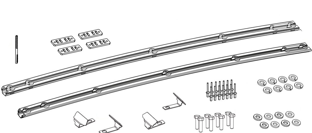 Yakima's LockNLoad Track Kits, meticulously engineered to seamlessly integrate with the unique roofline of your vehicle. This comprehensive kit comprises a set of tracks and all essential mounting hardware, meticulously crafted for a precise fit.