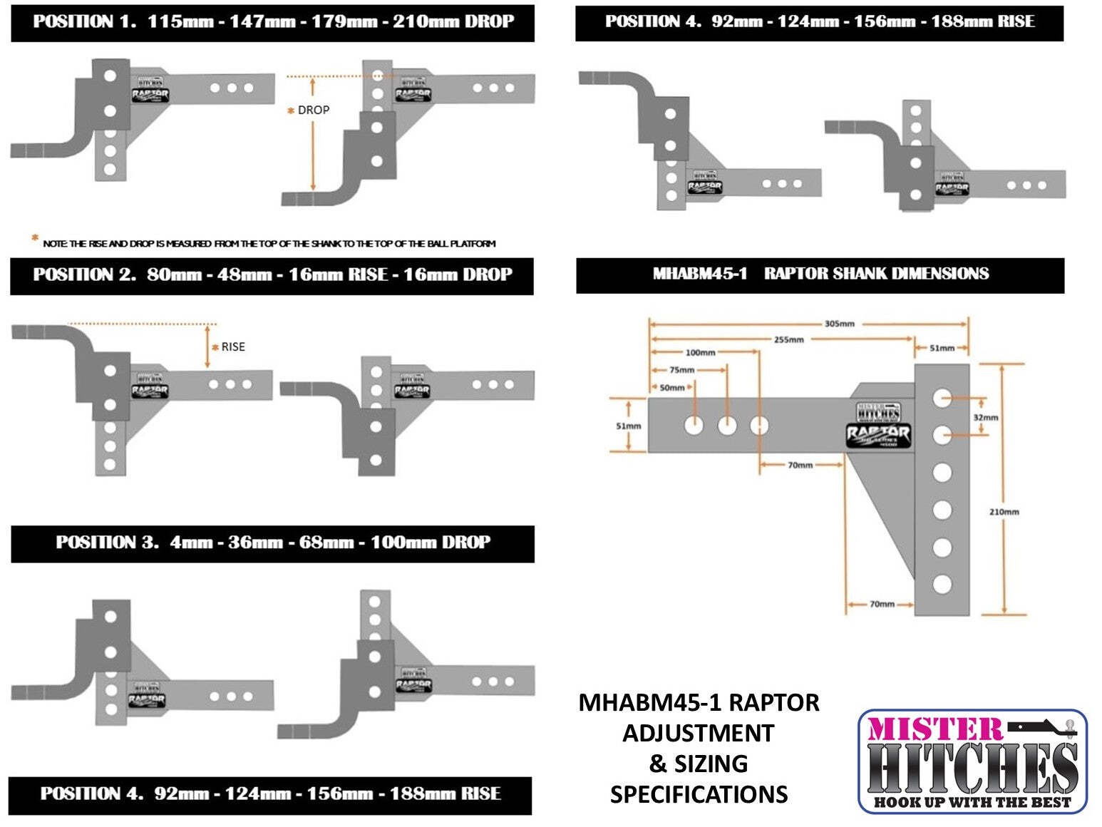 The Mister Hitches Raptor 4500KG Super Duty Adjustable Ball Mount (MHABM45-1), your ultimate towing solution with outstanding capabilities and features.