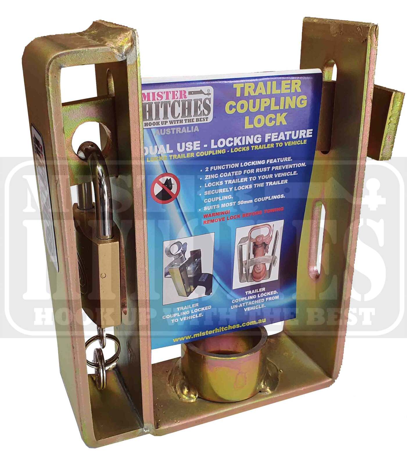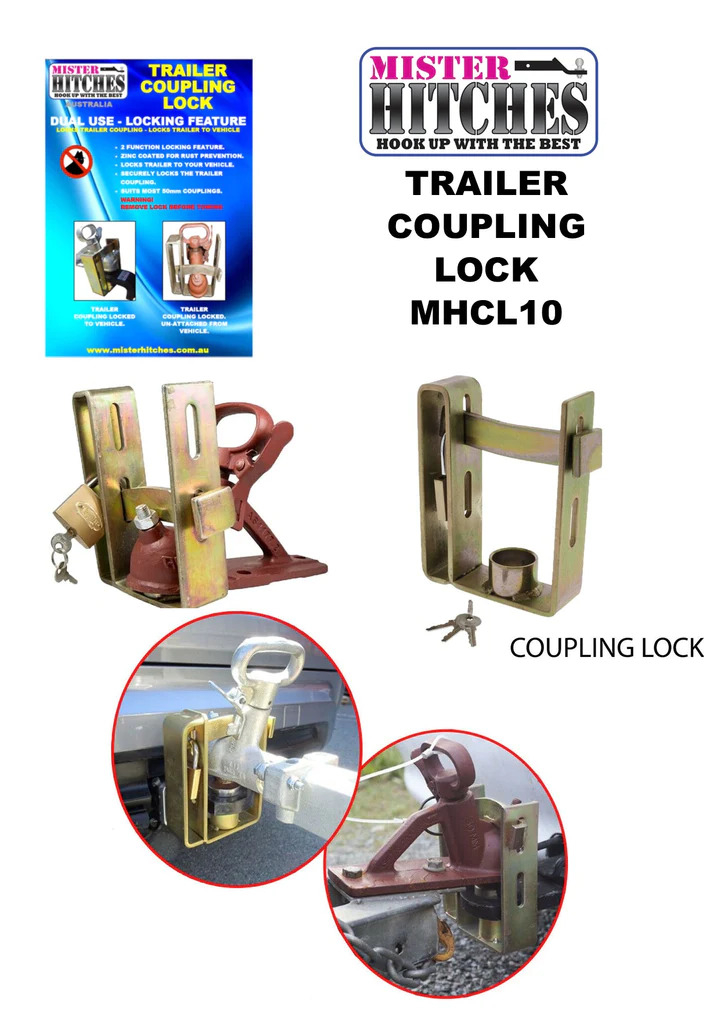 The Mister Hitches Trailer Coupling Lock (MHCL10) is a robust and versatile trailer security solution. This trailer coupling lock is an effective way to deter theft and secure your trailer or caravan. The 2-stage locking mechanism adds flexibility to your security measures, making it a valuable addition for any trailer owner.