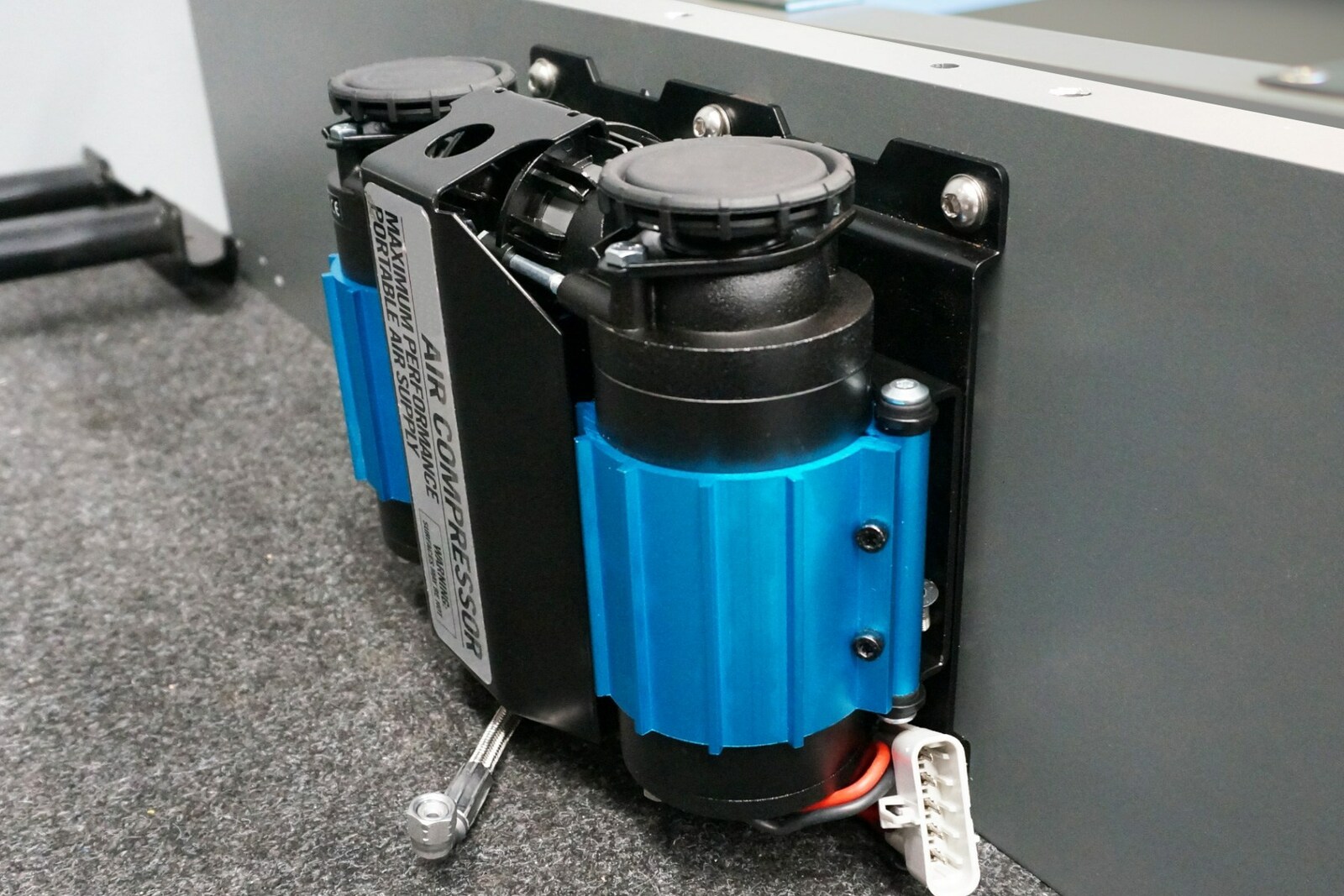 The MSA 4X4 Compressor Mounting Plates securely and neatly mount compressors and other accessories directly onto an MSA 4X4 Storage