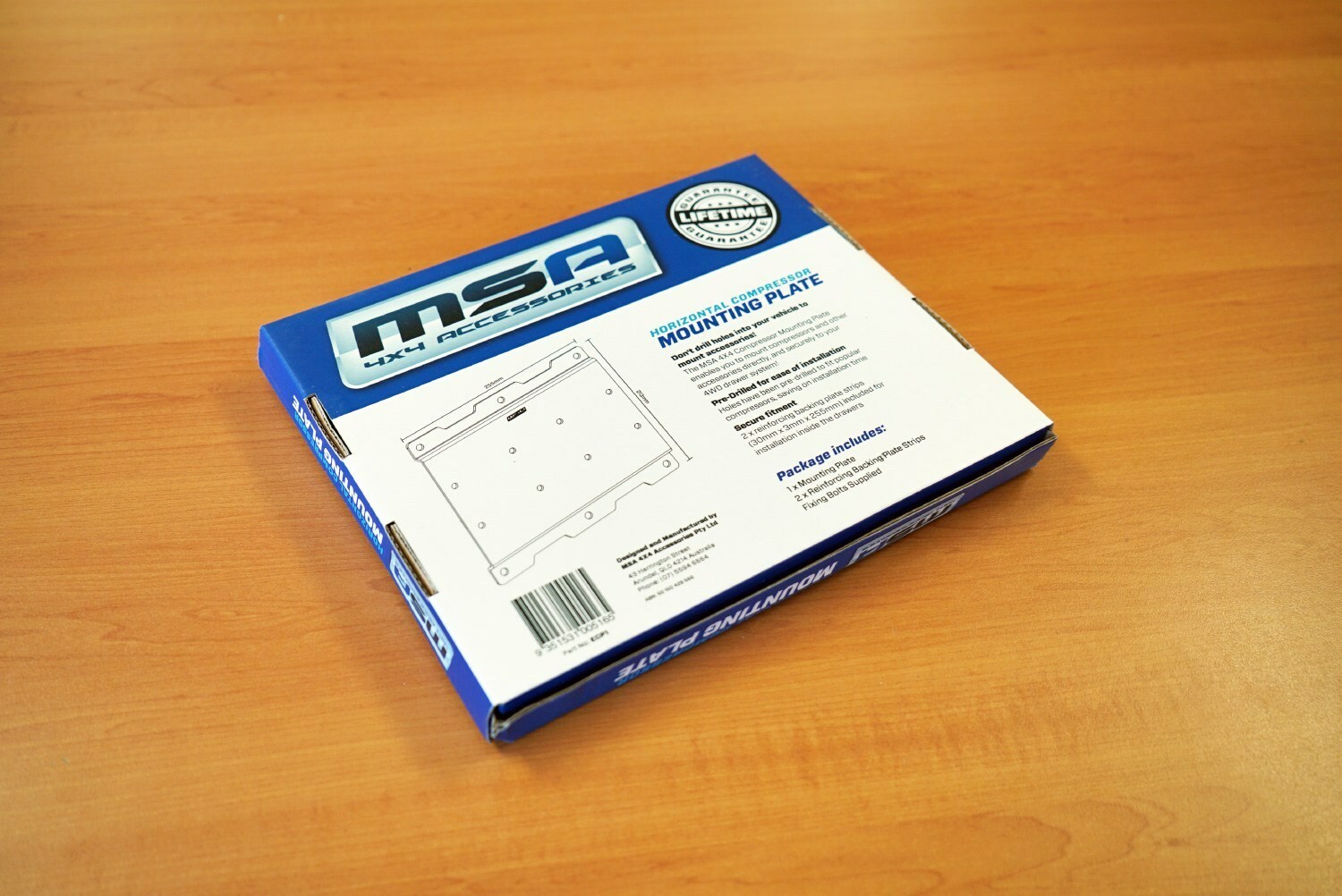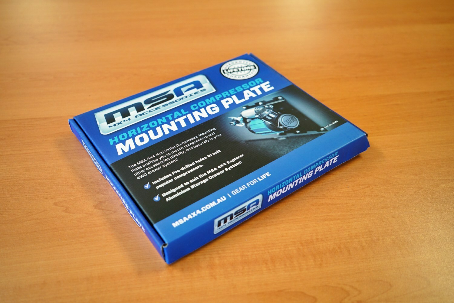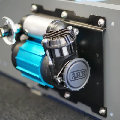 Drawer System. Utilising the space between the outside edge of the Storage Drawer System and the side of the vehicle, the compressor is positioned out of sight and covered by a removable Wing Kit Panel. Pre-drilled mounting bracket holes allow for easy installation of most popular compressors. Reinforced backing plate strips, along with the Compressor Plate, create a strong, secure and safe method of attaching a compressor to an MSA 4X4 Storage Drawer System.