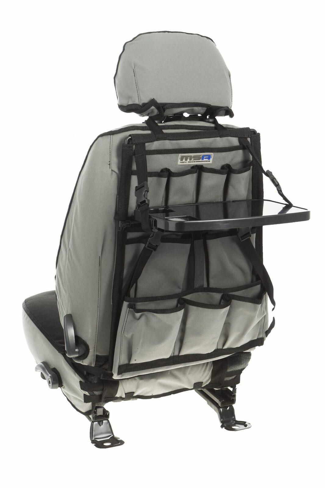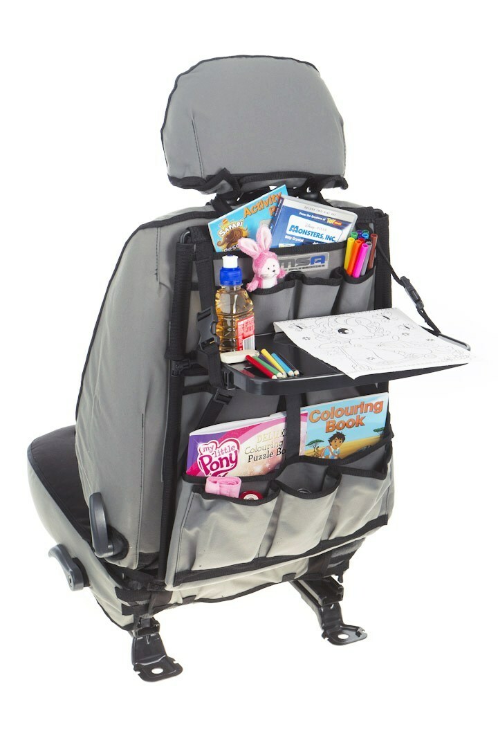 The MSA 4x4 Seat organiser with Drop Down Table is made from heavy-duty canvas for durability, it features 12 individual pockets of various sizes for increased storage possibilities. It also includes an injection moulded fold-away drop-down table with an inbuilt cup holder, excellent for keeping the kids entertained during travel breaks.
