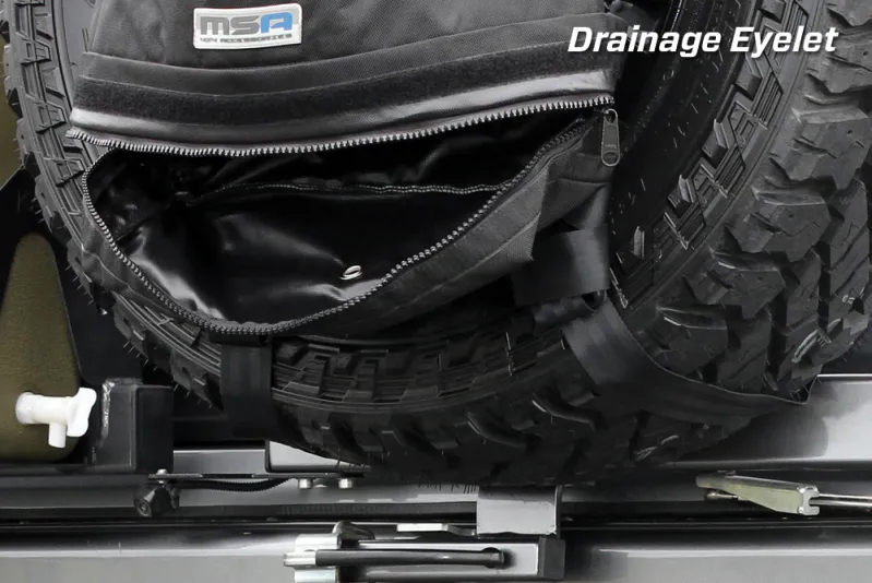 The reinforced base and YKK chunky zips, top and bottom, ensure peace of mind, that what is placed inside will remain inside during a long trip. Rubbish bags can be removed from the top or bottom. The stainless steel drainage eyelet allows the release of any fluids and the MSA 4X4 Rear Wheel Rubbish Bag is machine washable for added convenience.