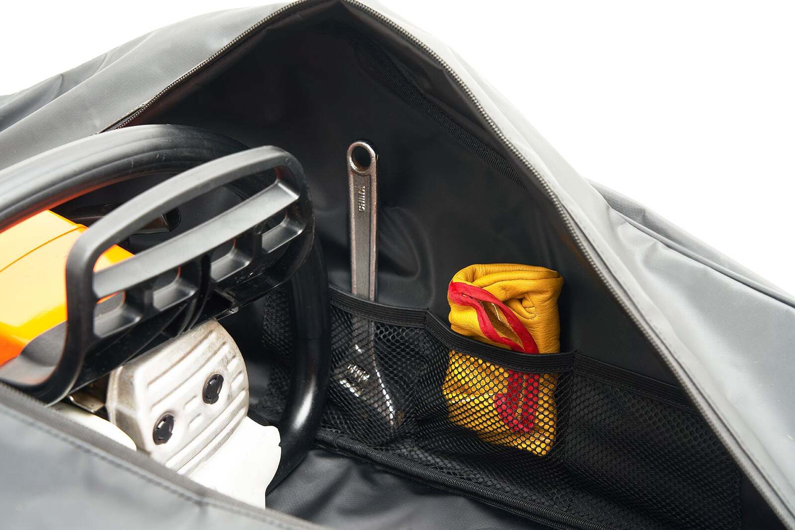 This heavy-duty chainsaw bag is designed for both saw and gear. Its slimline profile makes it easy to transport and store. Its 500gsm PVC fabrication with a reinforced, 3mm open cell foam base, keeps your gear, your vehicle and you safe and clean – and restricts fuel fumes.