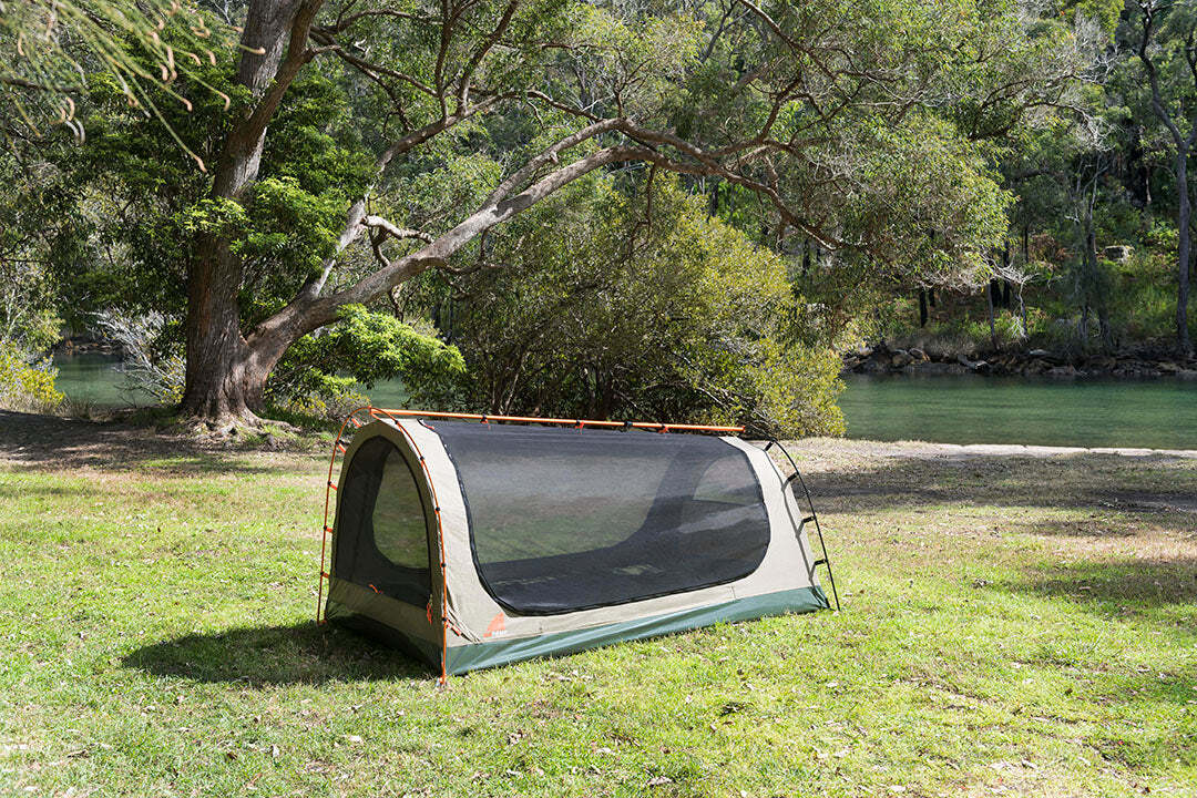 Enjoy the starlit sky and avoid the midday sun, the DS-1 PITCH BLACK Single Dome Swag comes fully kitted with smart features making it the perfect off-sider for jackaroo and camper alike