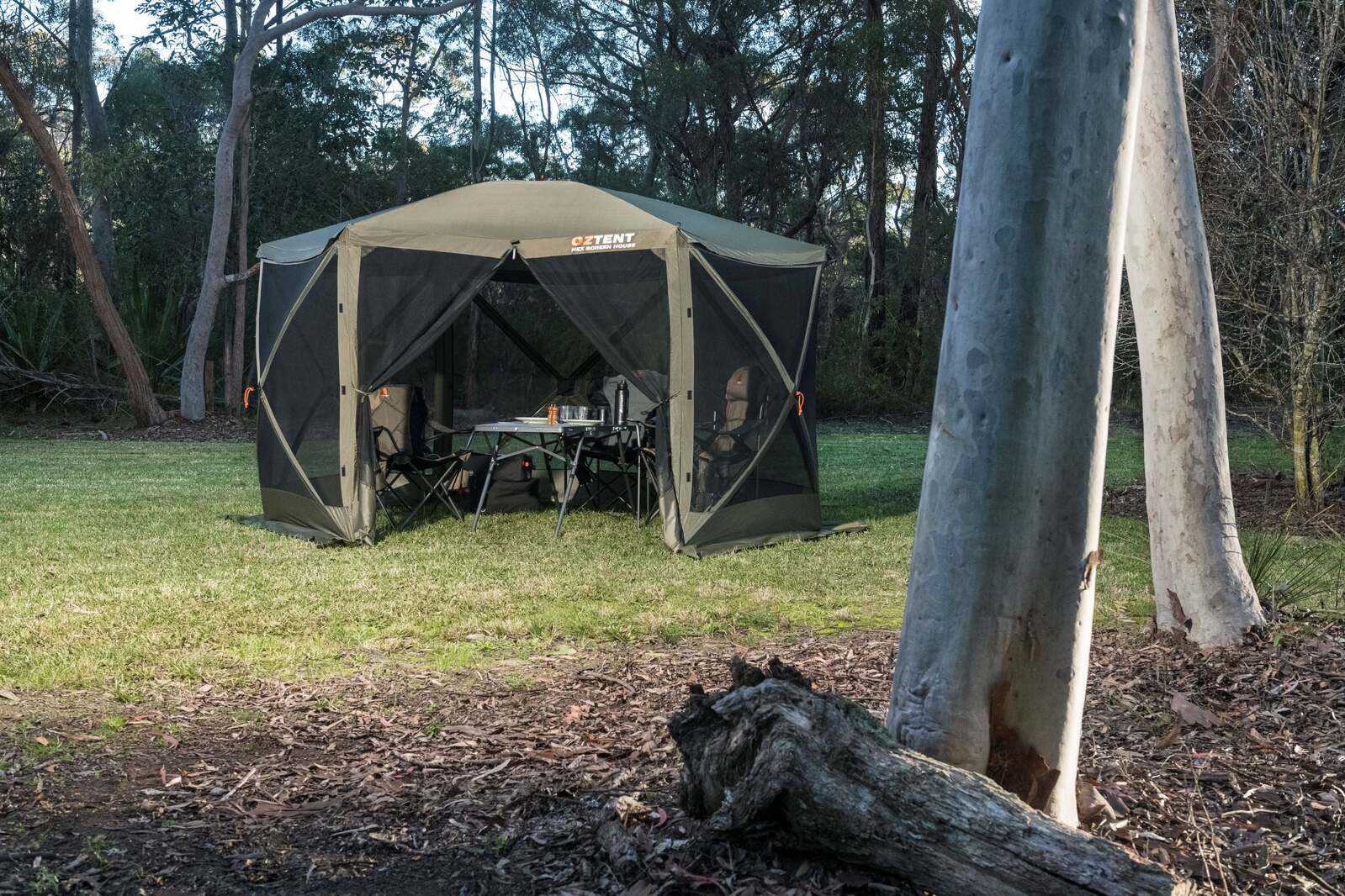 It easily pops into shape in seconds to provide you with shelter. The OZTENT Screen House Hex uses ultra-tough mechanisms, is shaped to provide plenty of usable space and is surrounded with fine mesh to keep the bugs out and the views great. Optional walls are available to attach to each side to provide extra protection when needed.