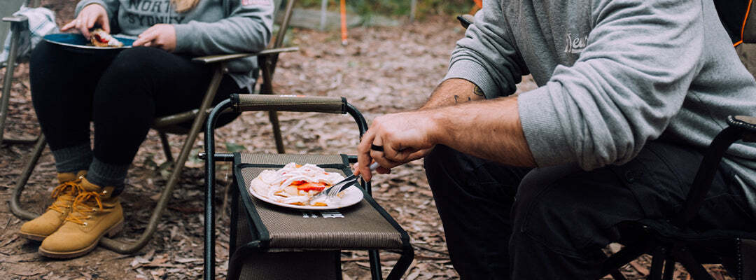 The OZTENT Sidekick can be used as a fishing stool, a footrest and a small table. The hard side-flap folds out of the way for use as a stool or footrest, or can be secured to the top to convert it into a stable surface to place your camping gear.