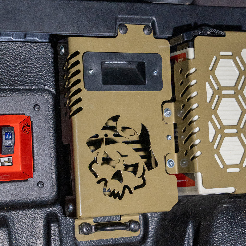 Pirate Camp Co. have designed this battery mount specifically to fill up the dead space within the tub. It sits above the wheel arch, has a provision for a BCDC, retains the factory light & runs all the wires so they’re hidden directly back to your tub switch panel.