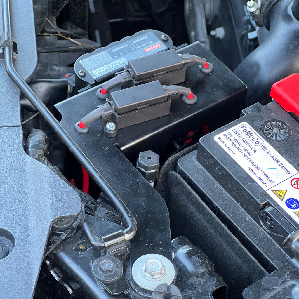 This aesthetically pleasing bracket has been purposefully designed to suit the RA Next gen Ford Ranger & Everest models, to house a Redarc BCDC charger, midi fuses & solar anderson.