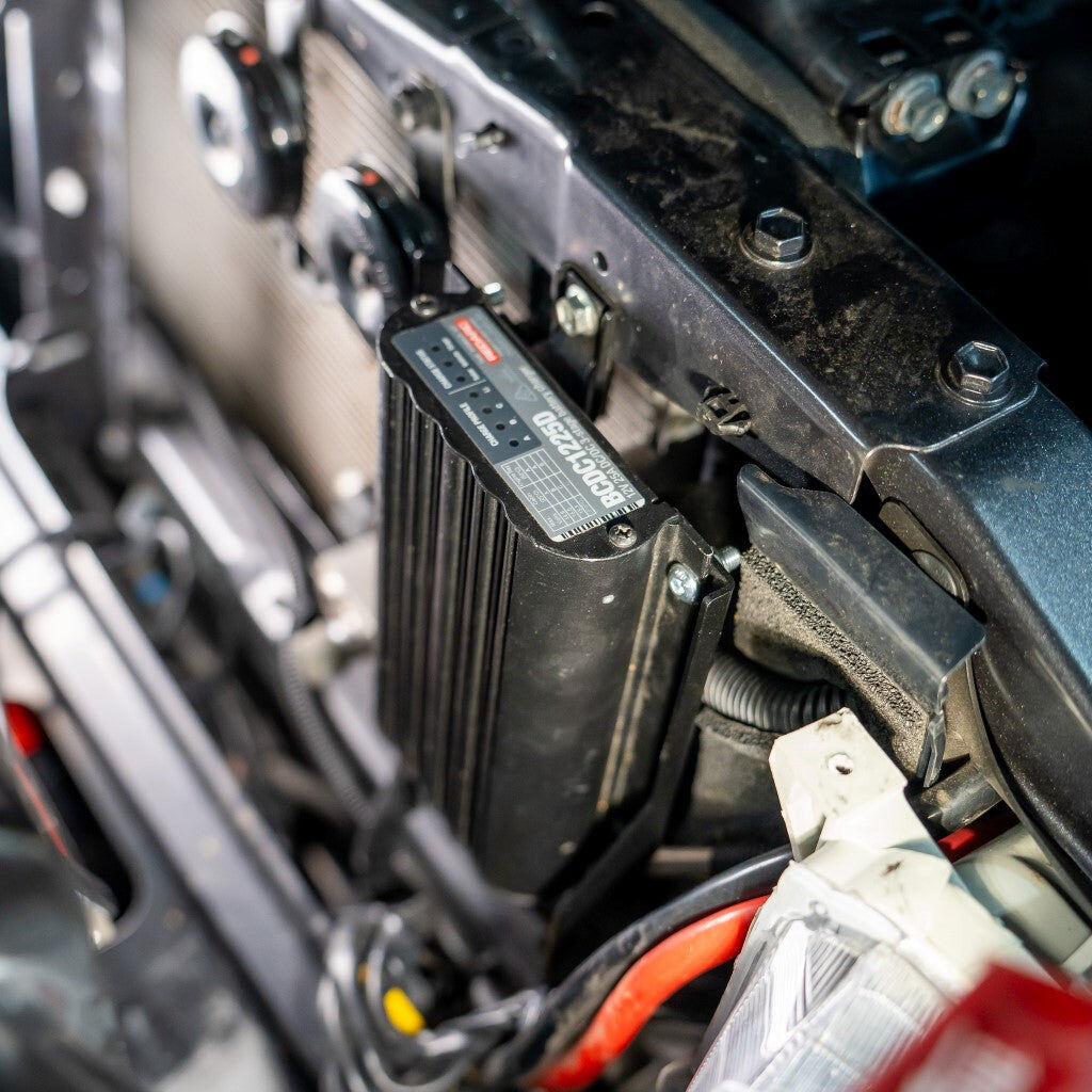 Designed to seamlessly fit into the existing mounting points in the LandCruiser 70 Series engine bay, our BCDC Mounting Bracket offers a secure and stable option.