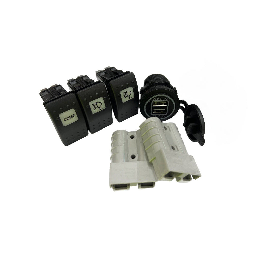 Pirate Camp Co's Accessory Pack for the Next-Gen Everest Cargo Switch Panel, the perfect companion to elevate the functionality and convenience of your Next-Gen Ford Everest. This thoughtfully curated pack includes high-quality components designed to seamlessly integrate with the Everest's cargo area, providing robust control and power solutions for all your off-road adventures.