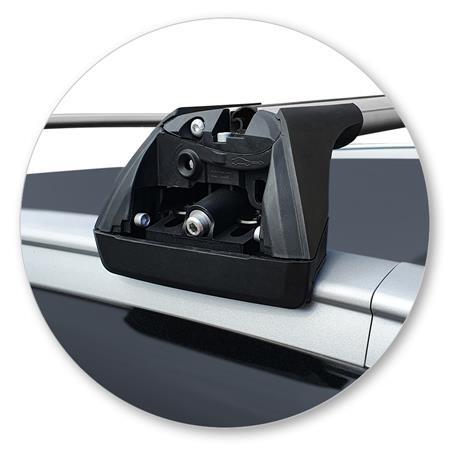 Once the mounting feet or towers are firmly affixed to the flush rails, crossbars are then installed across the width of the vehicle's roof. Serving as the fundamental framework for the roof rack system, these crossbars provide the base upon which cargo carriers, bike racks, or other accessories can be securely mounted. Depending on the specific vehicle model, the crossbars may feature adjustable mechanisms along the length of the rails, offering flexibility in positioning to accommodate various cargo sizes and shapes.