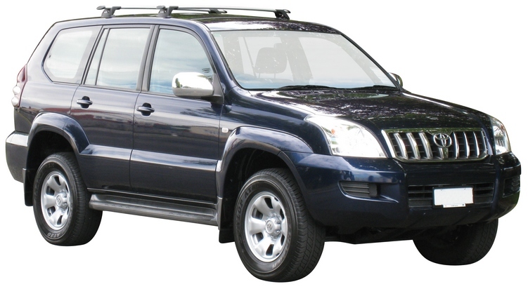 Prorack Silver 2 Bar Aero Through Bar kit to suit Toyota Land Cruiser Prado 120 Series 5dr SUV (3/2003 - 11/2009)