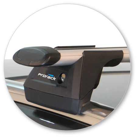 Clamps onto flush roof rail. Pins locate on inside of rail