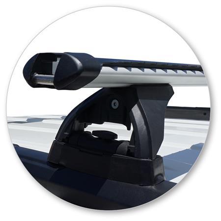 Once the mounting feet or towers are firmly affixed to the flush rails, crossbars are then installed across the width of the vehicle's roof. Serving as the fundamental framework for the roof rack system, these crossbars provide the base upon which cargo carriers, bike racks, or other accessories can be securely mounted. Depending on the specific vehicle model, the crossbars may feature adjustable mechanisms along the length of the rails, offering flexibility in positioning to accommodate various cargo sizes and shapes.