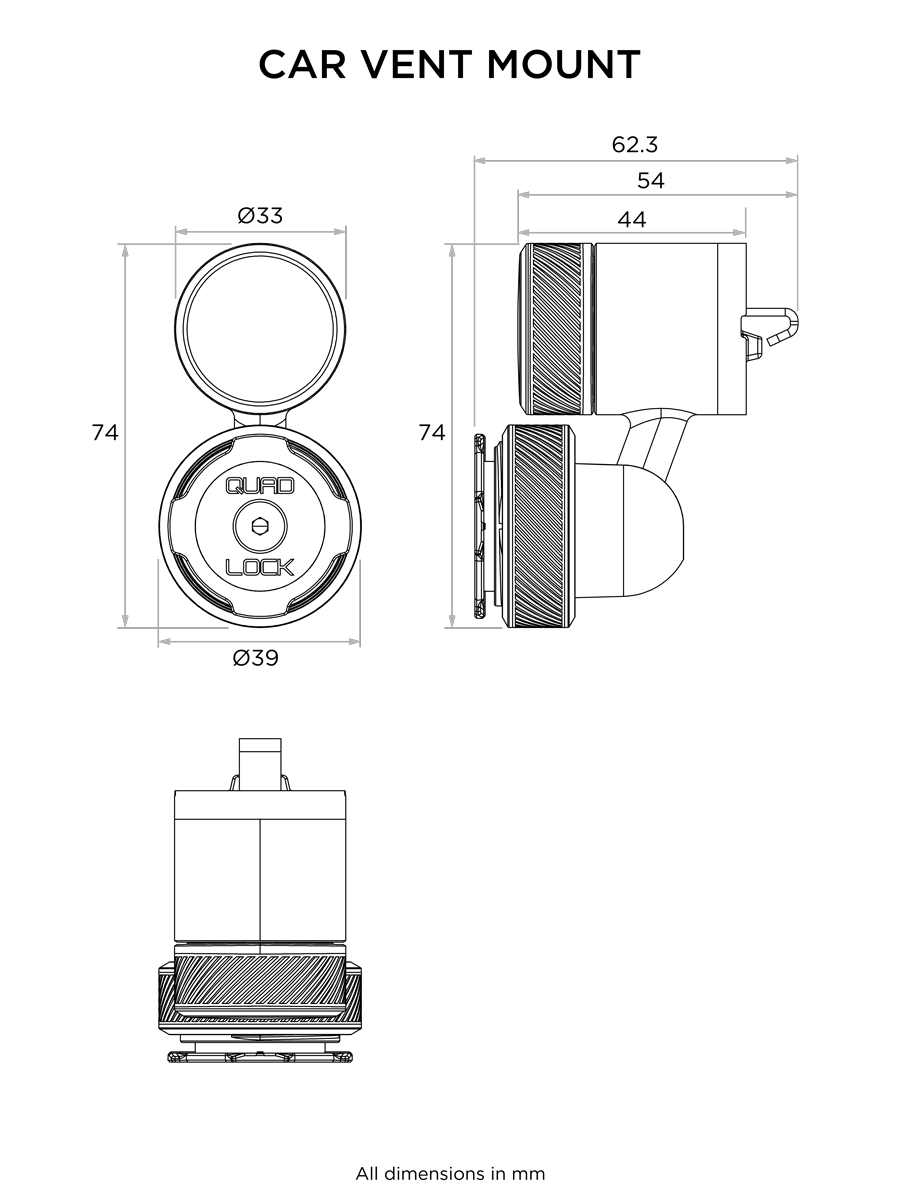 The clever hook design firmly holds the mount to a variety of car vents, while still allowing you to operate the open and close function.