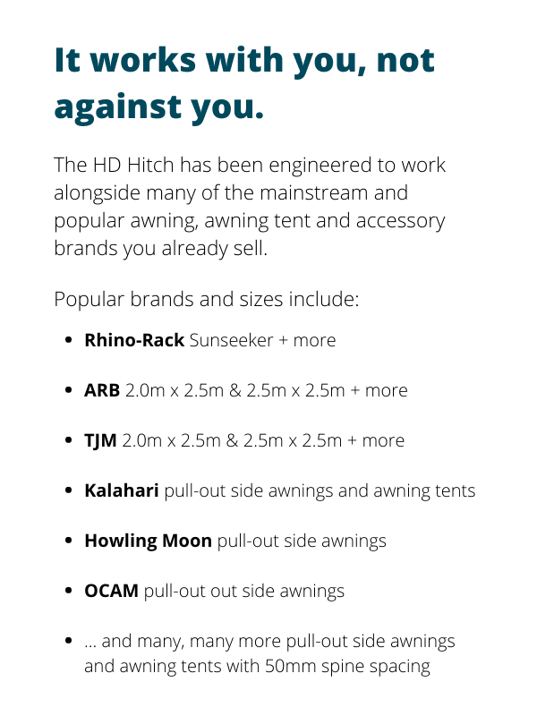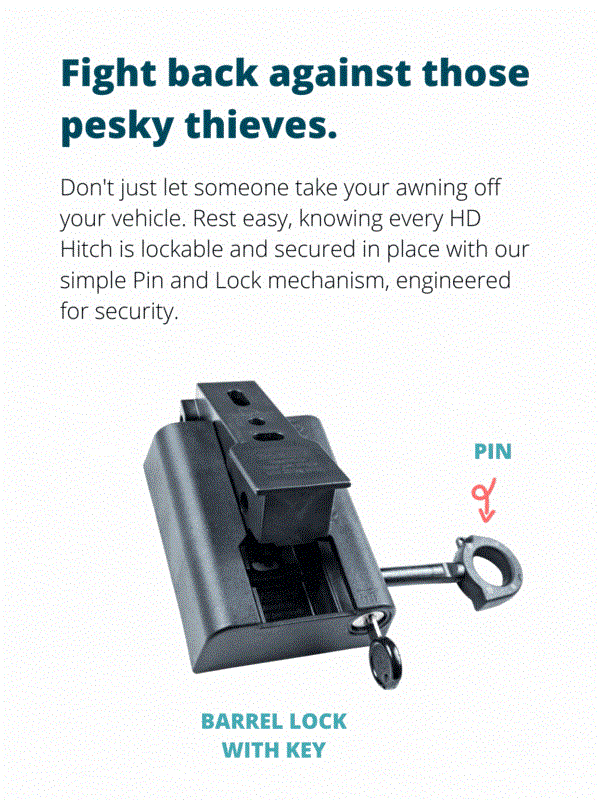 The RacksBrax HD Hitch Tradesman II Pack also includes 2 Prop Cleats to enable a pull-out awning to be pitched freestanding once it is erected off the side of a vehicle. See instructions for more detail.
