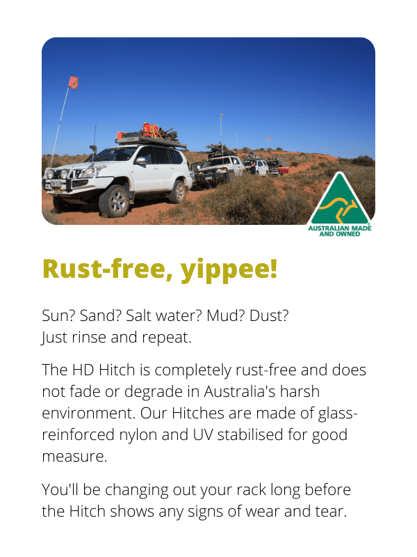 The RacksBrax HD Hitch Tradesman II Pack come with stainless steel fasteners to suit both M6 and M8 sized drill holes in either the accessory bracket or the roof rack; both bolt sizes are also provided to allow for awning spine tracks which suit M6 or M8 bolts.