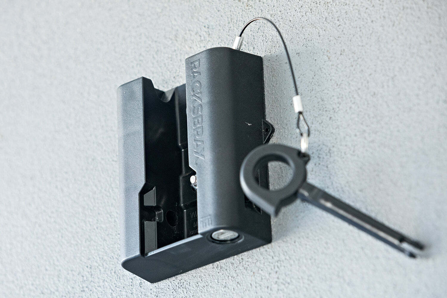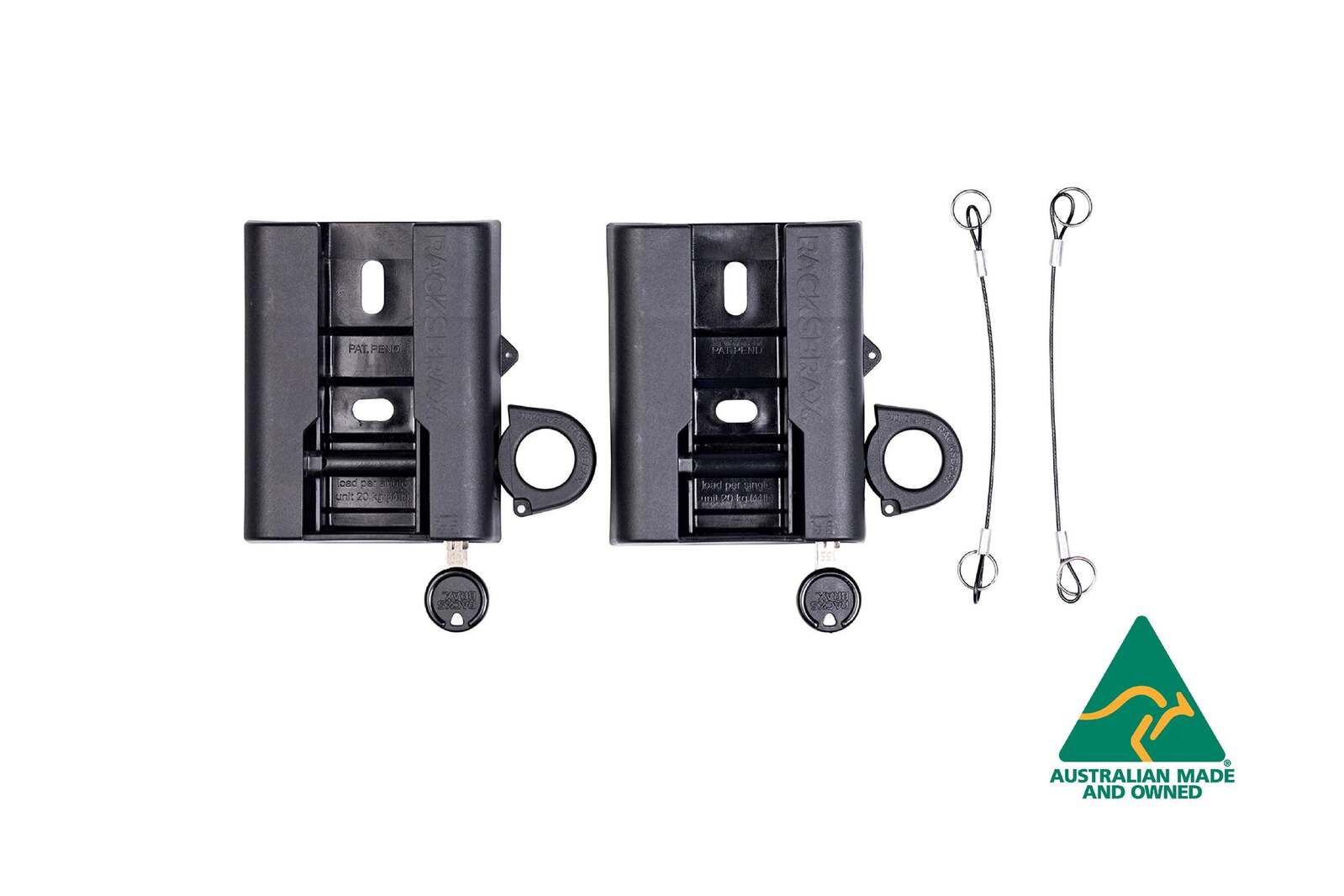 The HD Loackable Wall Mount (8161) includes one pair of quick-release Bodies so that your roof rack accessory can be fixed to a garage wall when not in use. This allows for easy changeover from awning to conduit tube and back to awning in under 10 seconds and includes a lock!