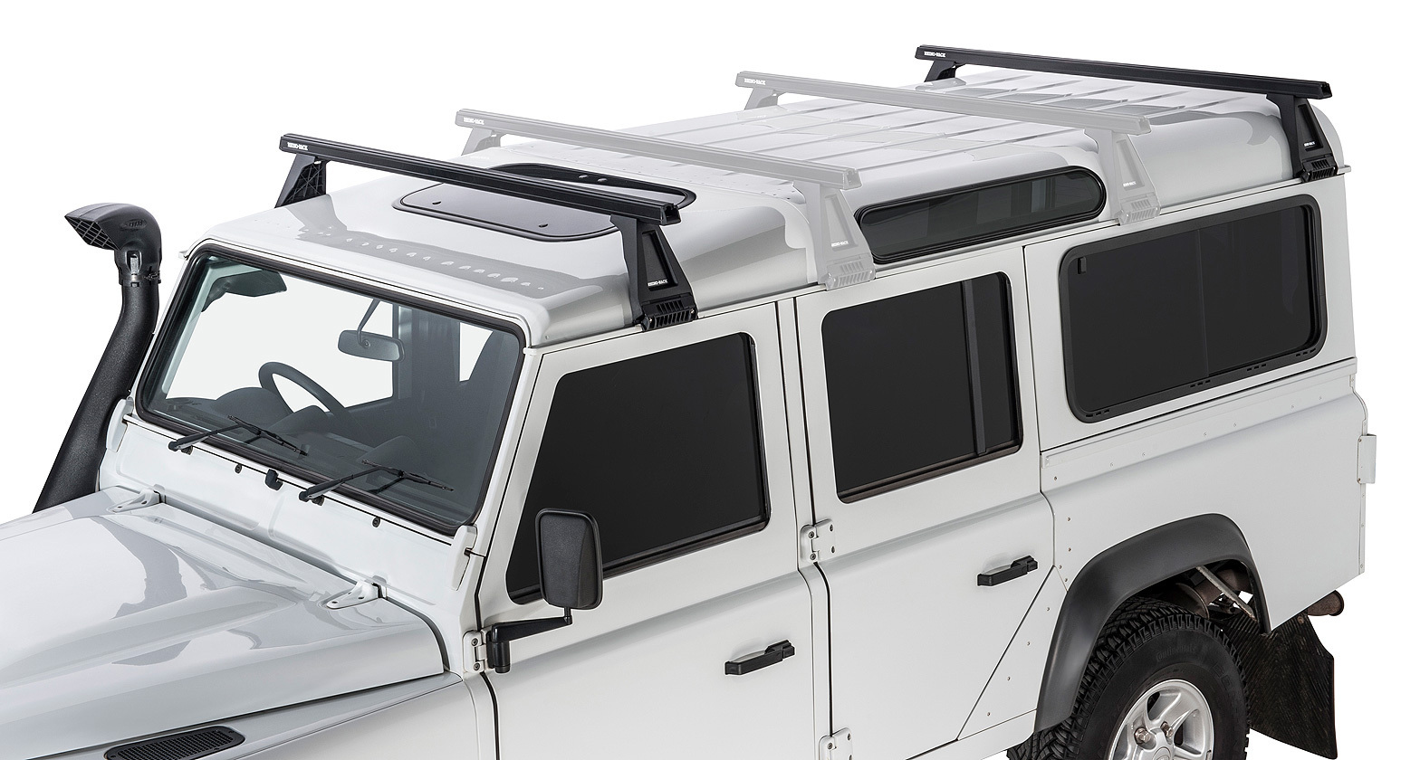 Rhino-Rack JA0804 Heavy Duty RL210 Black 2 Bar Roof Rack for LAND ROVER Defender 110 / 130 (Incl. HCPU) Crew Cab 4DR 4WD (03/1993-12/2020)