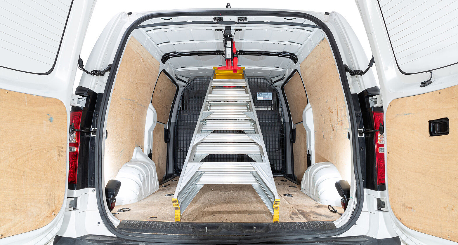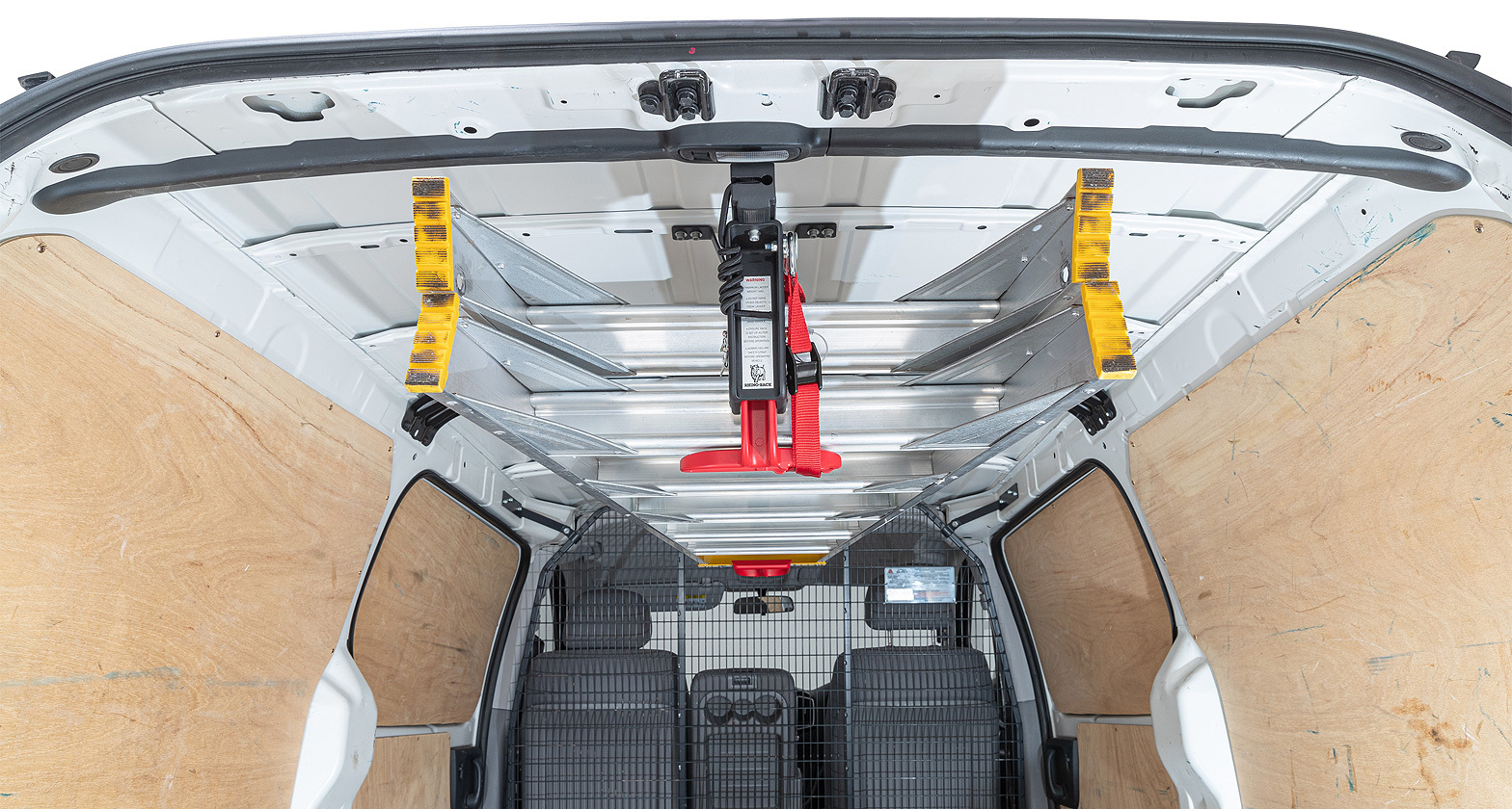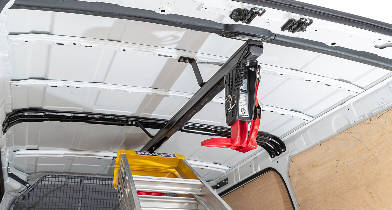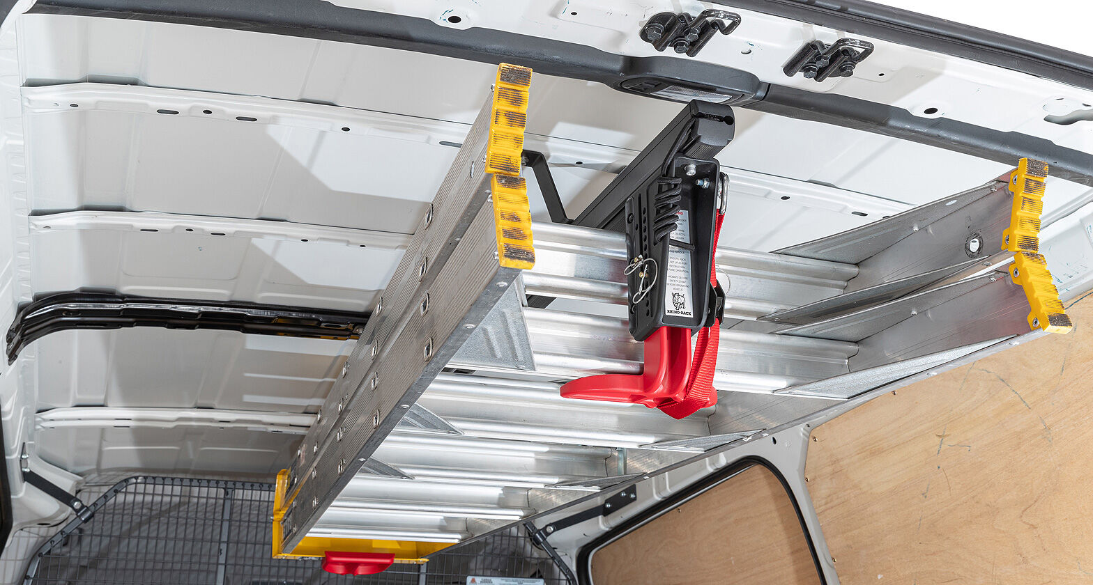 The Rhino-Rack Internal Ladder Rack is a new interior ladder rack system that mounts to the underside of the roof of your van. Connecting to the inside of your vehicle's roof via 3 vehicle specific brackets, it allows for ladders to be securely transported inside the vehicle without taking up valuable floor space. The new Rhino Rack Internal Ladder Rack reduces the risk of theft of your ladder and keeps it out of the elements, clean and dry, ready for quick unloading at your next job.