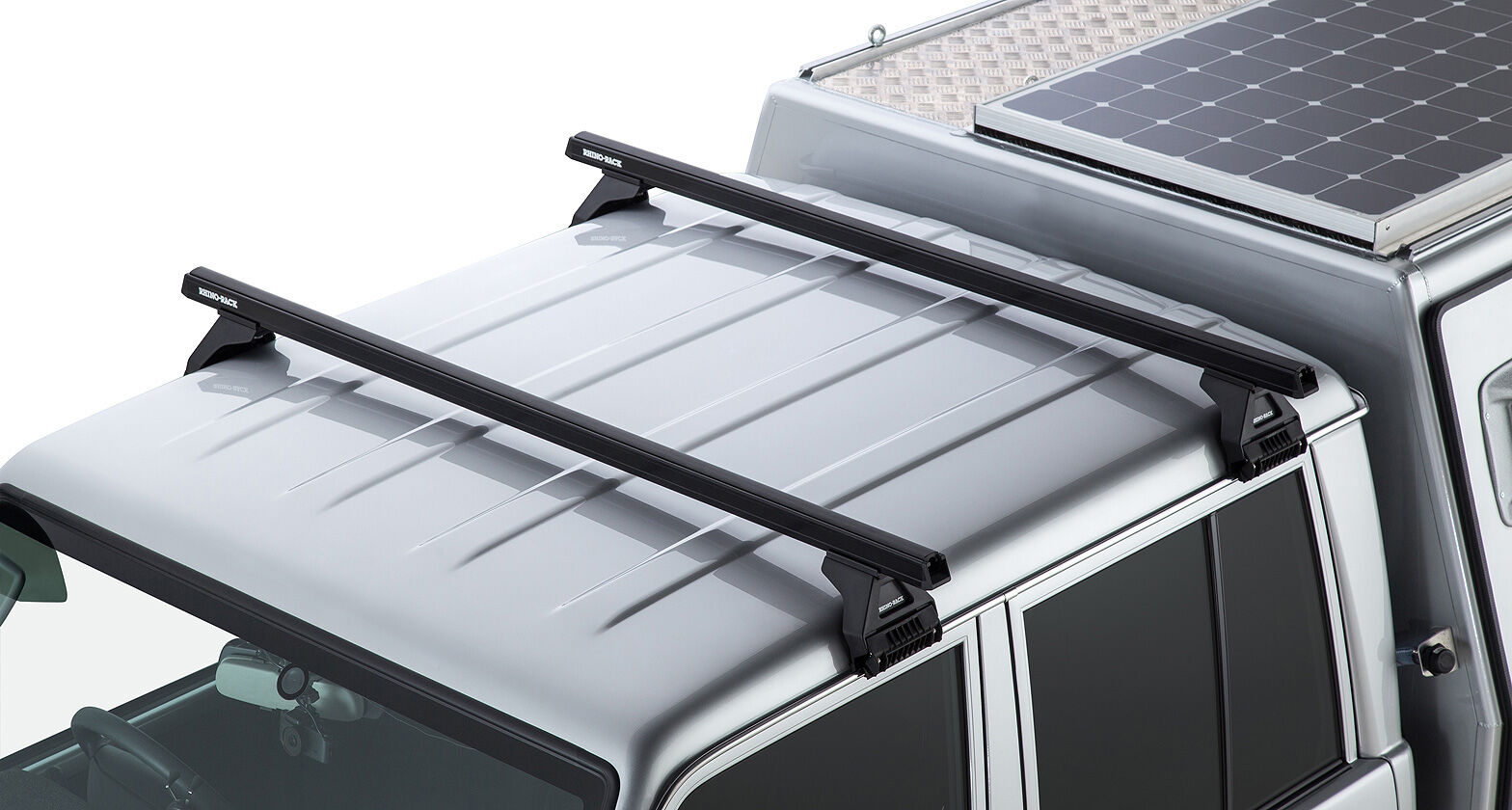 Rhino-Rack JA0802 Heavy Duty RL150 Black 2 Bar Roof Rack for TOYOTA Land Cruiser 79 Series Double Cab 4DR 4WD (01/2007-12/2023)
