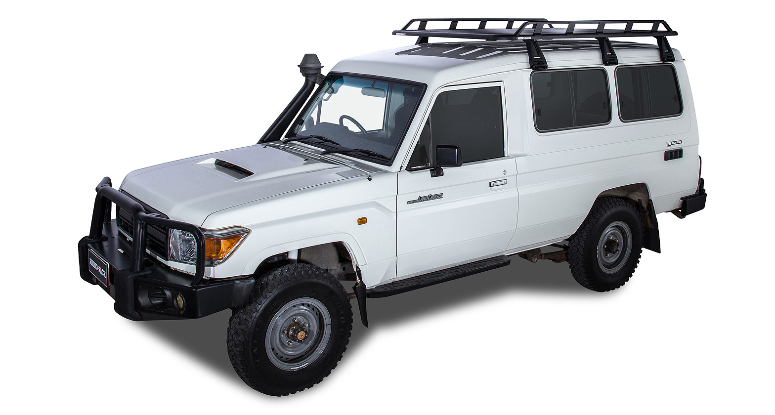This roof rack solution is specifically designed to suit a TOYOTA Land Cruiser 75/77 Series Troop Carrier 2DR 4WD (01/1985-01/1999).