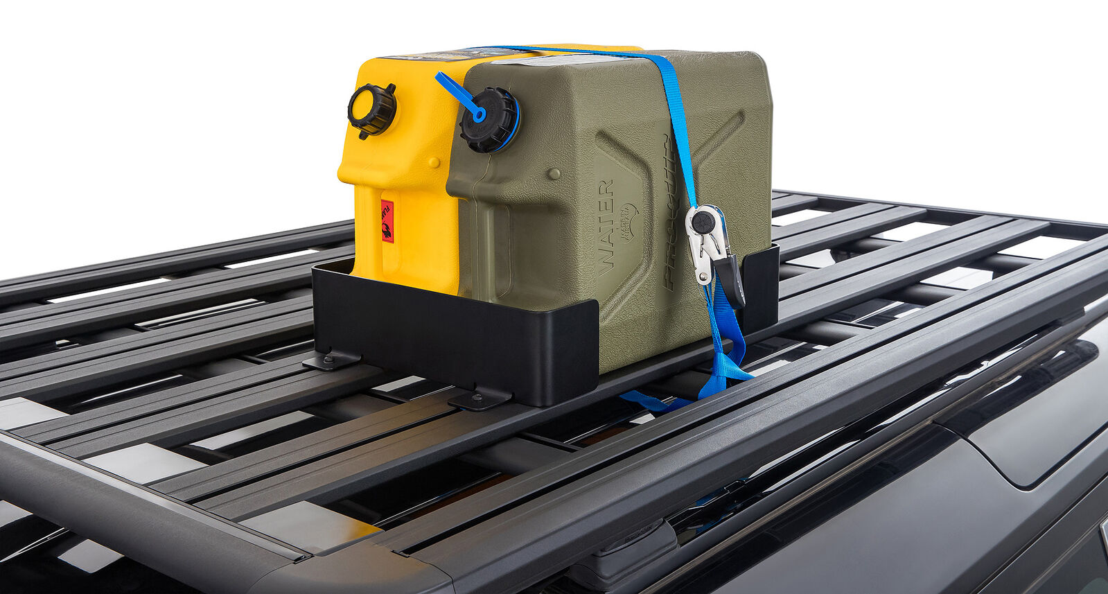 Take enough fuel or water to get you to remote destinations with the Rhino-Rack Double Jerry Can Holder. This product is a space conscious resolution.