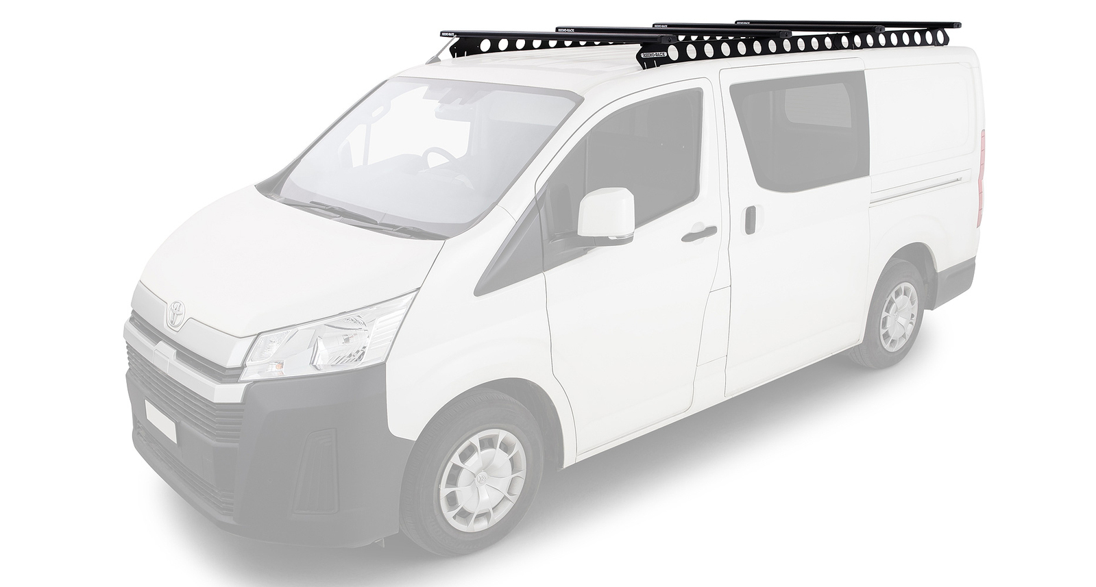 This roof rack solution is specifically designed to suit a TOYOTA Hiace Gen 6 LWB 2DR Van (06/2019-Current).