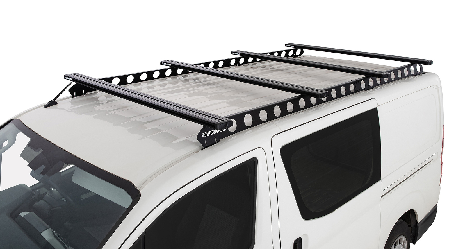 The Rhino-Rack Backbone is a mounting system for your Toyota Hiace. Connecting to your vehicle's roof via 3 secure mounting points on each side, this system includes 4x Reconn-Deck crossbars to be fitted on top. This is the perfect setup for both work and leisure. Take your Toyota HiAce on the jobsite during the week carrying your ladder, tools and Sunseeker Awning. Simply swap out your ladder and tools for camping supplies as the weekend comes around for the ultimate van camping setup!