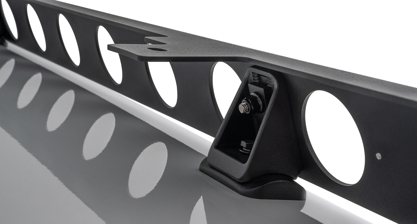 The Rhino-Rack Universal Modular Backbone is a mounting system for a range of Canopies/Cap Toppers. The patented mounting mechanism allows for a modular angular adjustment across a wide range of Canopies/Cap Toppers.