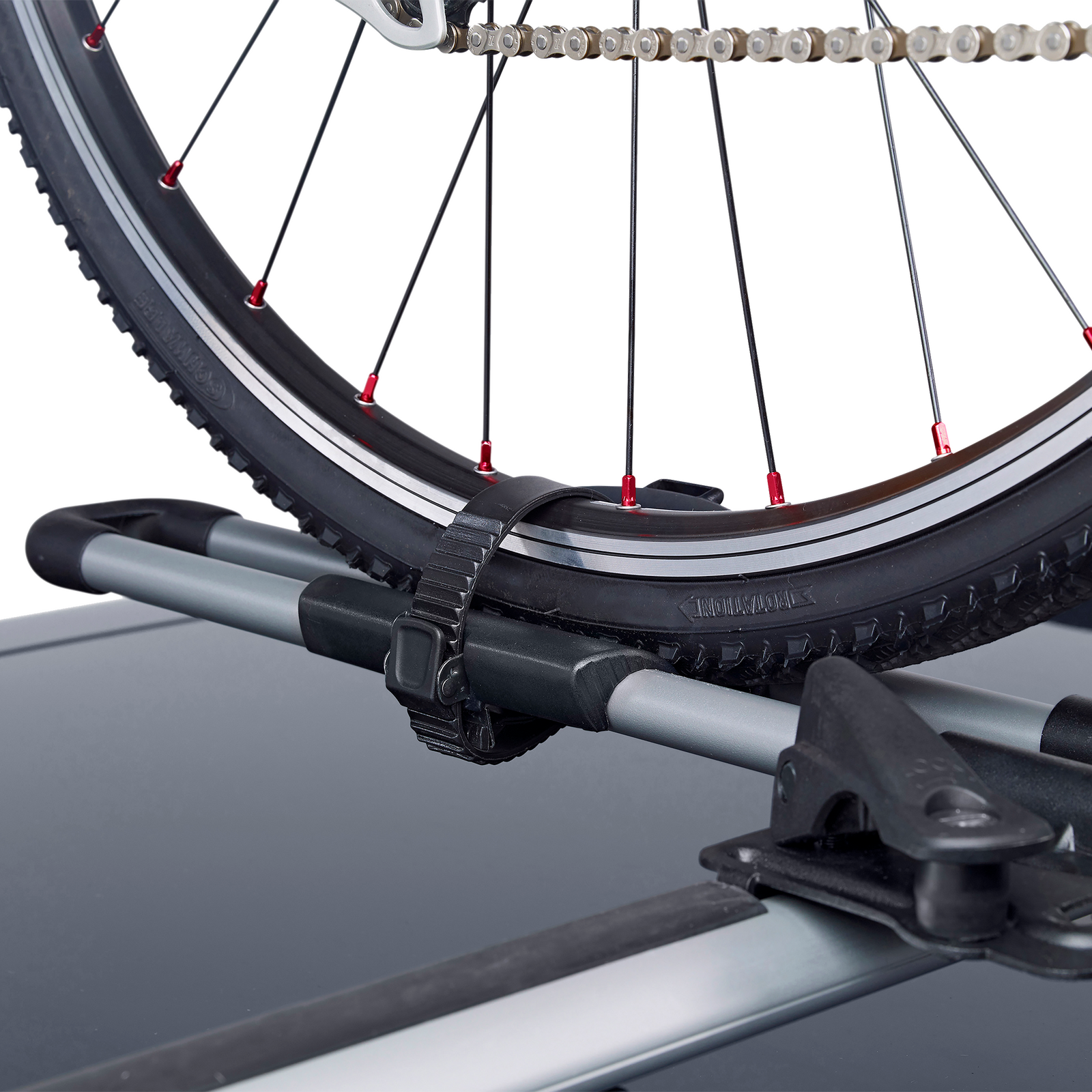 • Locks the bike to the bike rack and the bike rack to the roof racks (locks included)