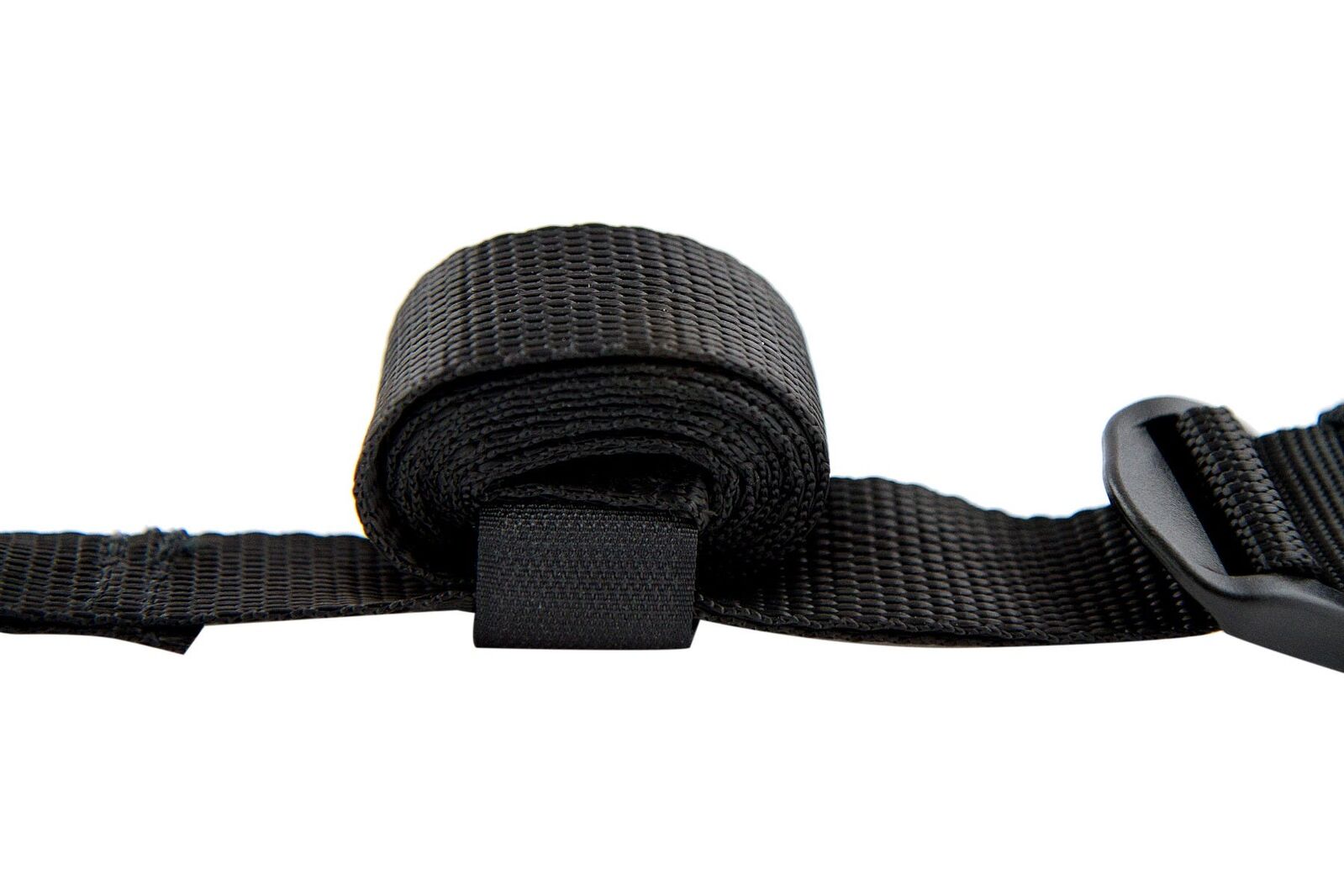 Keep your rack clean and organized with the cinching hook and loop strap that neatly stows away excess strap length.