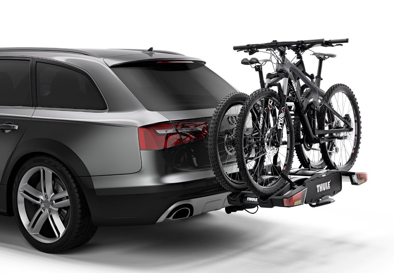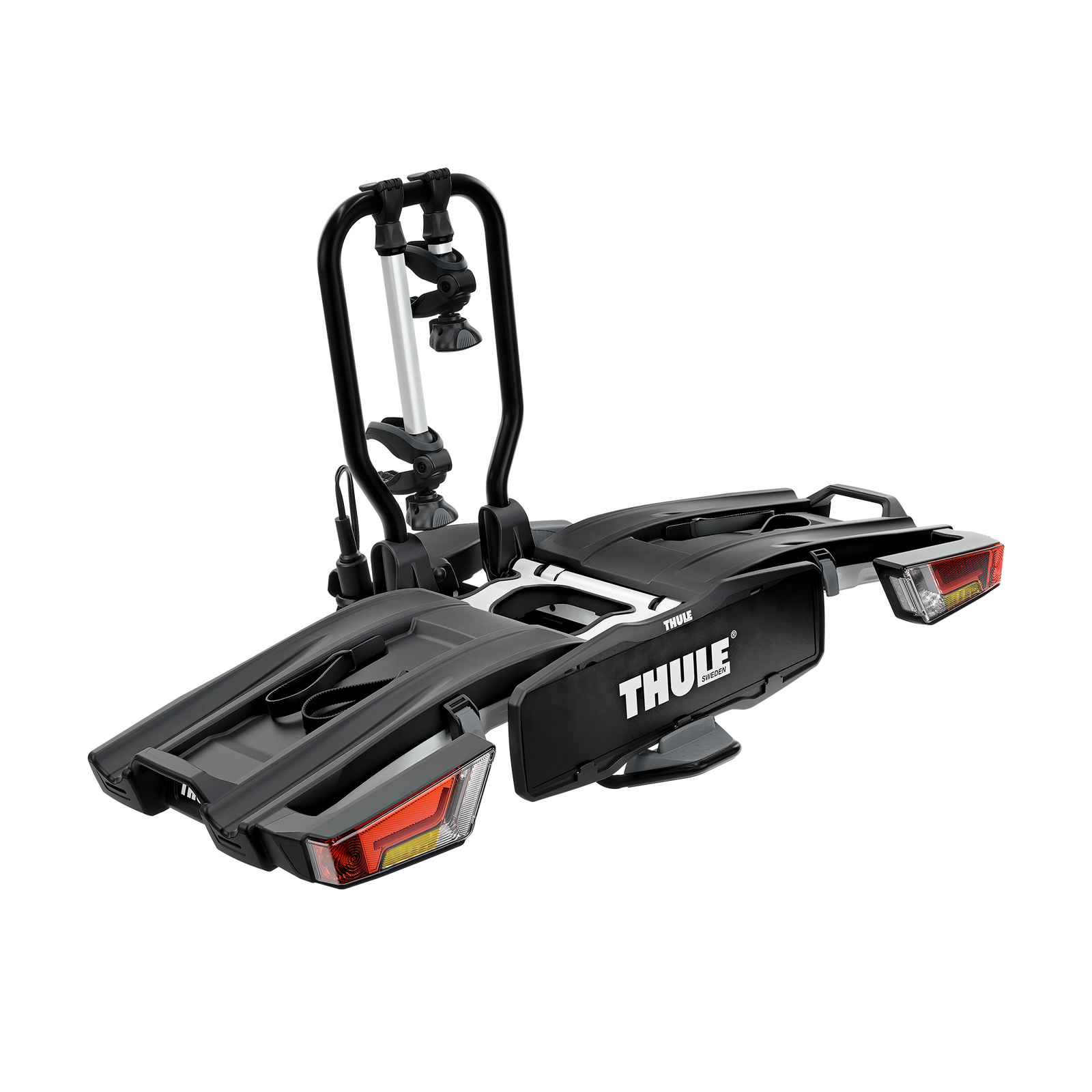 • Easy mounting of bikes through detachable bike arms with lockable Thule AcuTight torque limiter knobs that click when optimal torque is reached