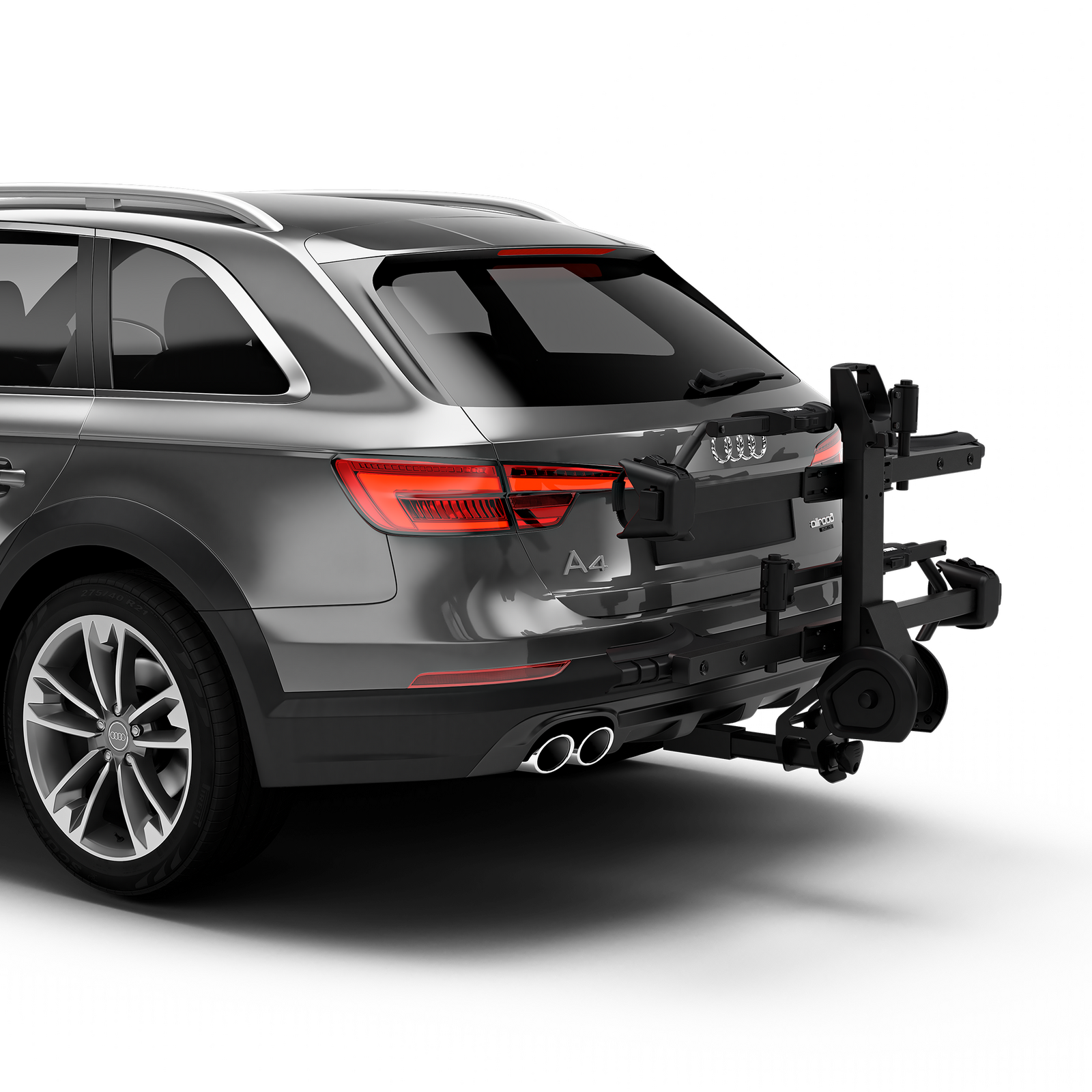 • The HitchSwitch lever allows you to tilt the rack down for rear vehicle access or tilt it up when not in use