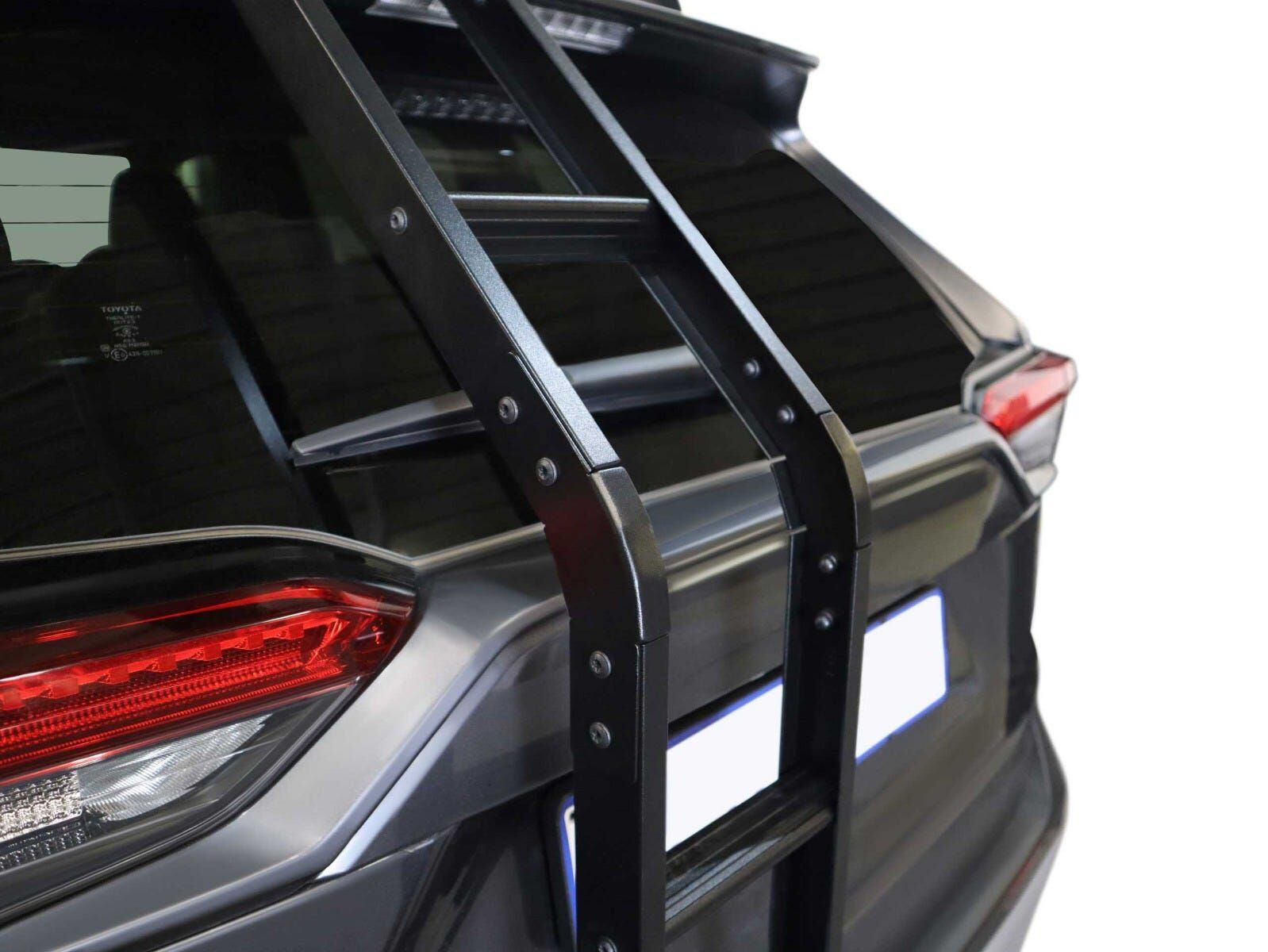 A four step ladder for the rear hatch of the Toyota Rav4 5th Gen to access your cargo or sporting gear on your rack.