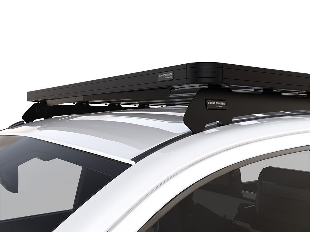 This 1156mm/45.5'' long, full-size, Slimline II cargo roof rack kit contains the Slimline II Tray, Wind Deflector, and 2 Low Profile Foot Rails to mount the Slimline II Tray to your Toyota Tundra Double Cab. Drilling is required for installation.