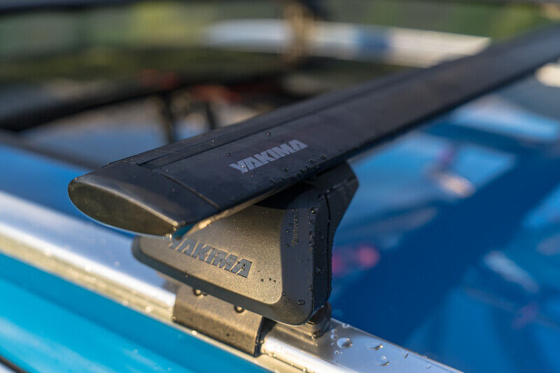 The Yakima JetStream Through Bar Roof Rack extends beyond the legs, providing extra width, which is ideal for mounting an awning or loading a kayak onto the roof. The JetFlow design is exceptionally aerodynamic, incredibly strong, lightweight, and really quiet on the move. The root of a modern rack system, it carries a lot and looks good doing it.