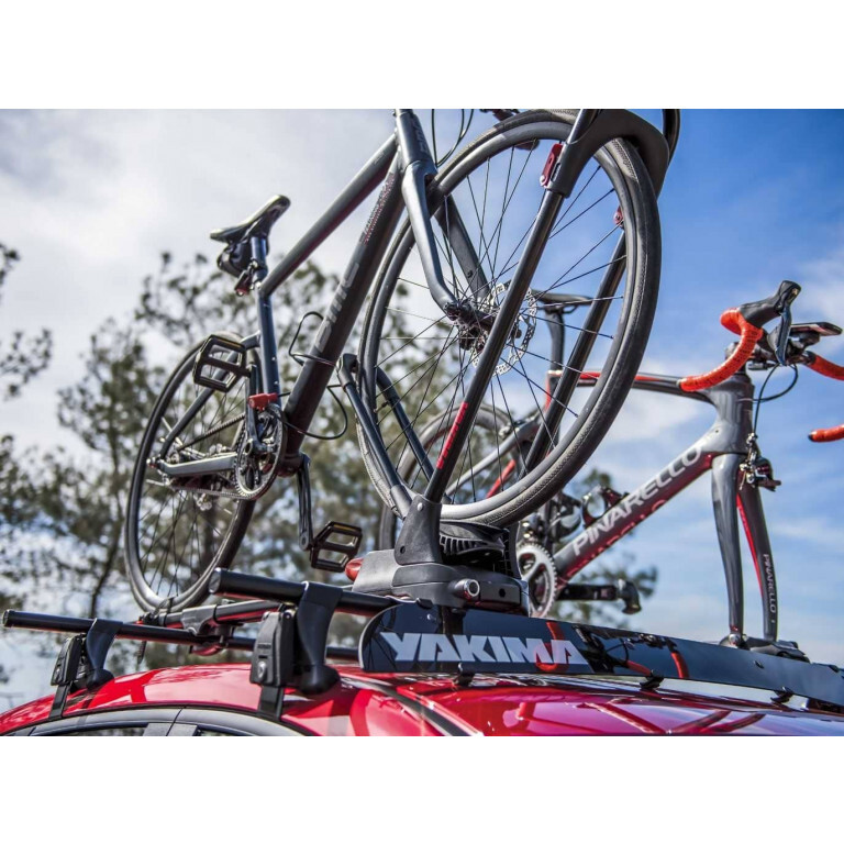 The Yakima FrontLoader Single Bike Roof Mounted Carrier is the epitome of versatility and aerodynamic design for your cycling adventures. Impress your friends with this sleek and innovative bike mount that securely carries your complete bike without the need for wheel removal.